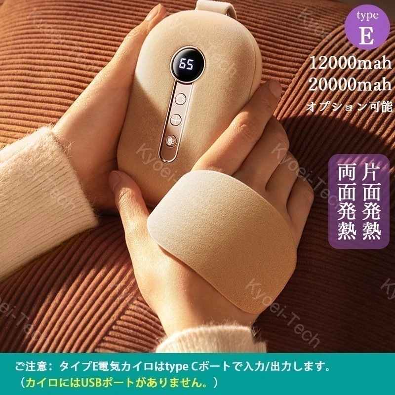 充電式カイロ 電気カイロ 充電ハンドウォーマー 電子カイロ 10000mAh000mah容量 1台2役 電力残量表示 全面発熱 3階段温度調節 USB軽量モバイルバッテリー 電気かいろ 防寒対策
