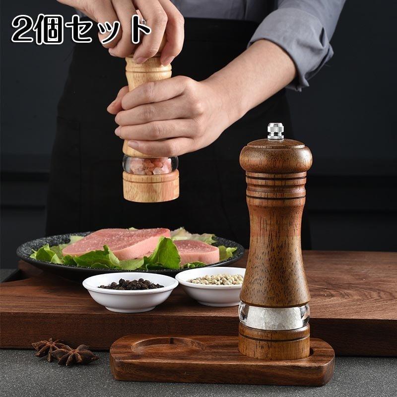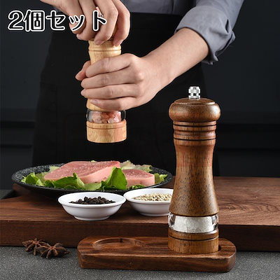 第1弾セール中ペッパーミル 木製 クラシック 手動ソルトグラインダー 詰め替え可能 可視ウィンドウ付き 調節可能 6インチ 2パック