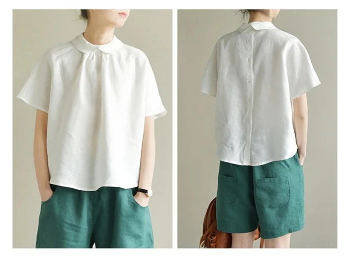 リネンブラウス レディース ブラウス 半袖 フレンチスリーブ トップス プルオーバー カジュアル シャツ ブラウス かわいい 可愛い