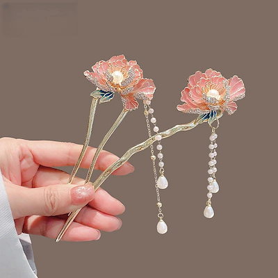 古風で優雅な真珠のフリンジと牡丹の花をあしらった髪飾り 上品な後頭部の巻き髪用髪飾り漢服や旗袍に合う髪飾りアクセサリー