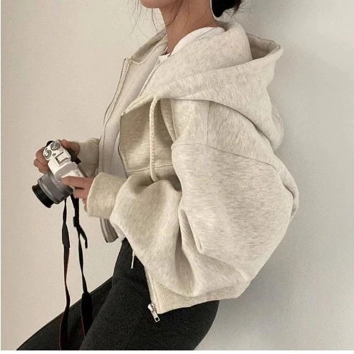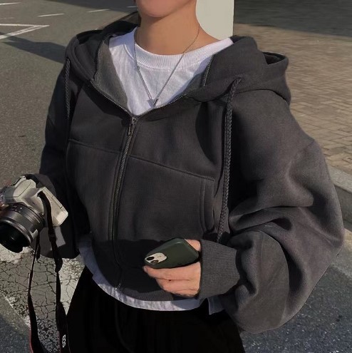 ジッパー付き フード付き ショート丈 スウェット アウター レディース 韓国風 2025年秋冬 ゆったり おしゃれ 無地 トップス 6色