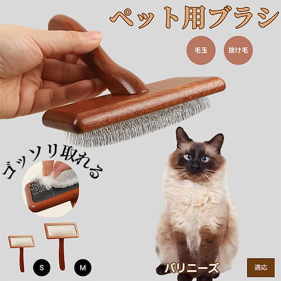 バリニーズ猫種 バリニーズ ペットブラシ 犬用 猫用 スリッカーブラシ 抜け毛除去 短毛 中毛 長毛 犬ブラシ 猫ブラシ ペット用 グルーミング マッサージ 丸洗いOK 先丸ピン