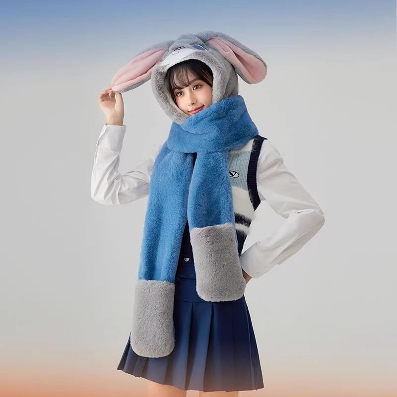 新入荷 秋冬 帽子 可愛い キャラクター 小顔効果 帽子 マフラー 手袋 フード付き 男女兼用 ふわふわ 防寒 防風 帽子