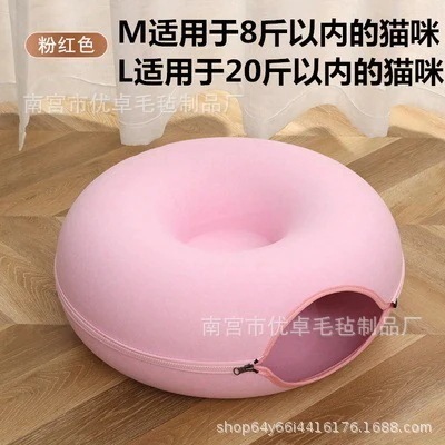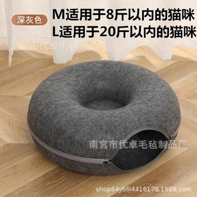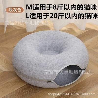 ペットベッド ドーナツ型 キャットトンネル トンネル ペットソファー キャット ねこ ベットグッズ ネコ キャットベッド かわいい おしゃれ フェルト素材 オシャレ フェルト 洗える おもV