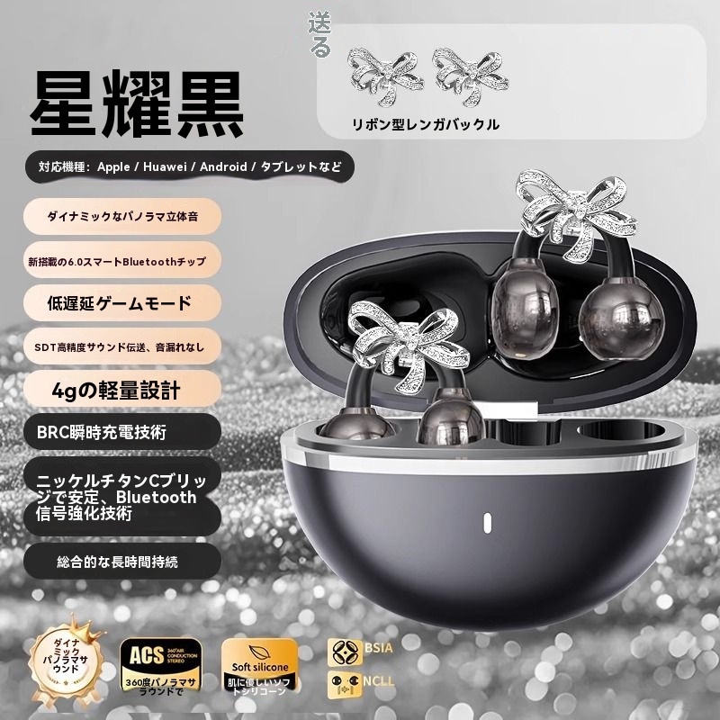 AIステレオクリップ式イヤホン 急速充電・HIFI音質・ノイズキャンセリング機能 スポーツ専用・超長時間バッテリー・Bluetooth 6.0 軽量快適・音楽・通話・仕事・運動を満喫