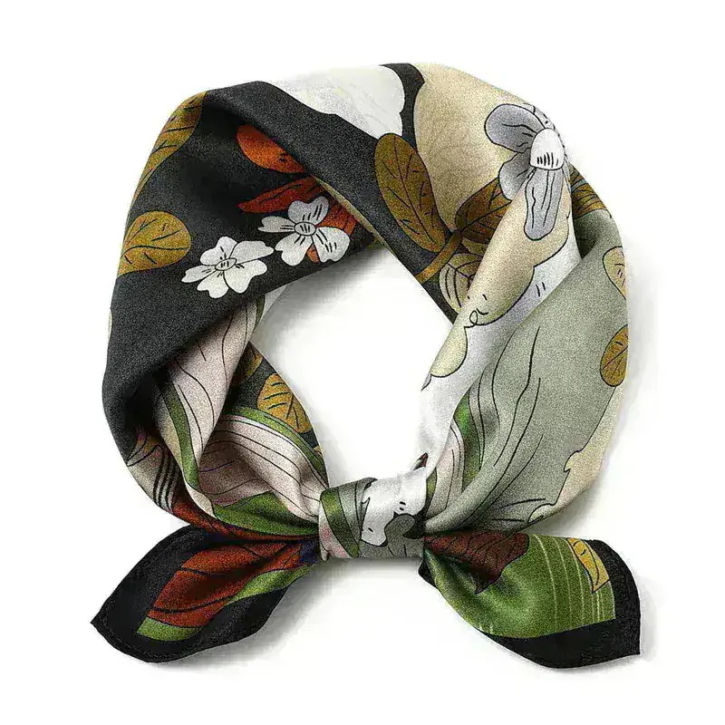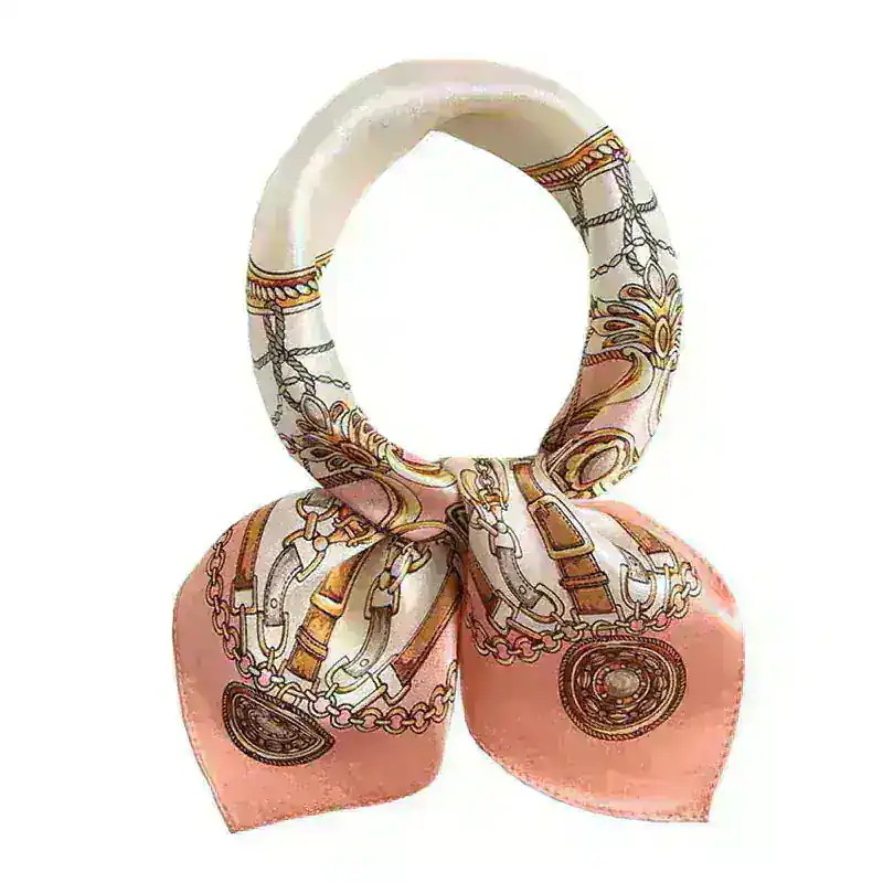 バースデープレゼント シルク100% スカーフ 53cm ピンク色 赤 花柄 ブランドロゴ プリント ギフト 包装 無料 ヘアスカーフ バンダナ スカーフ ヒジャブ