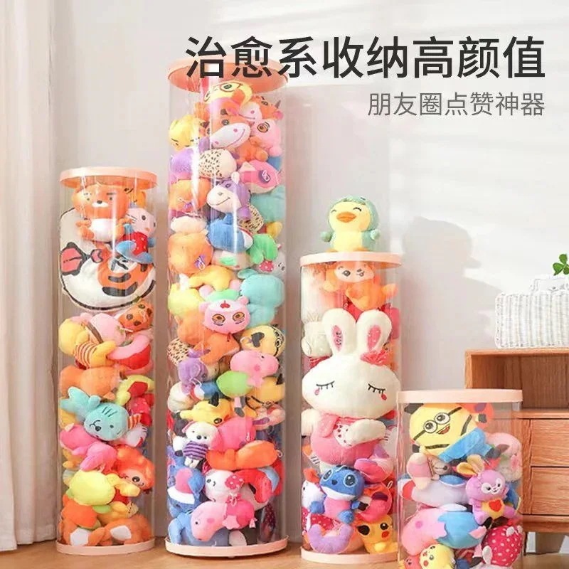 新作 人形防塵収納桶玩具収納ぬいぐるみ布透明収納桶円柱形人形収納神器