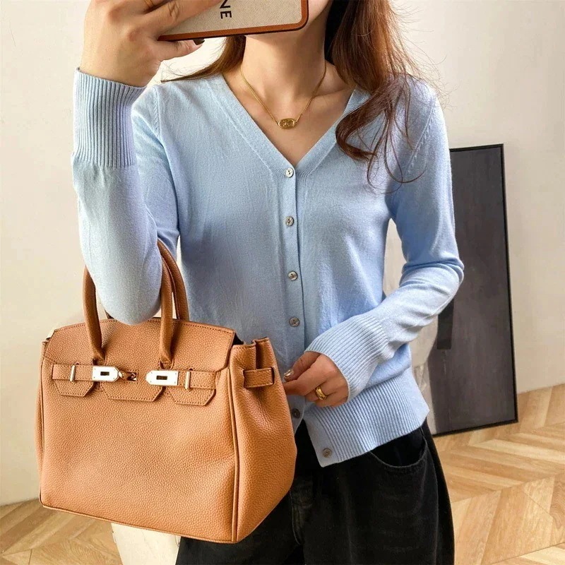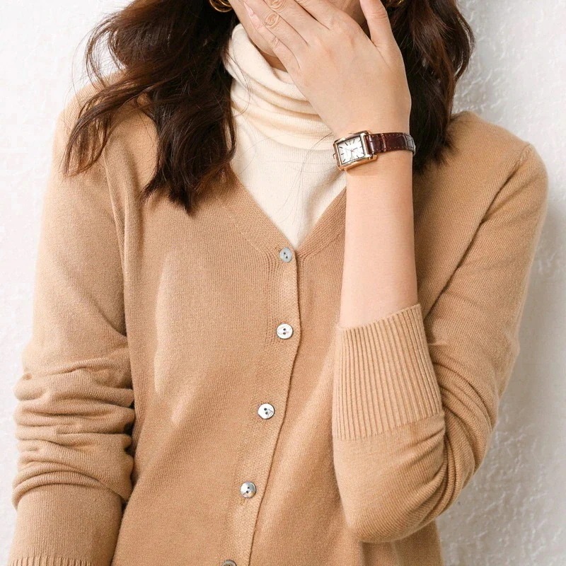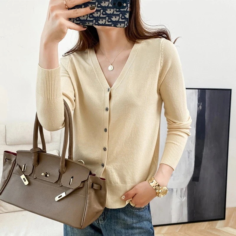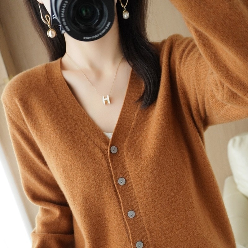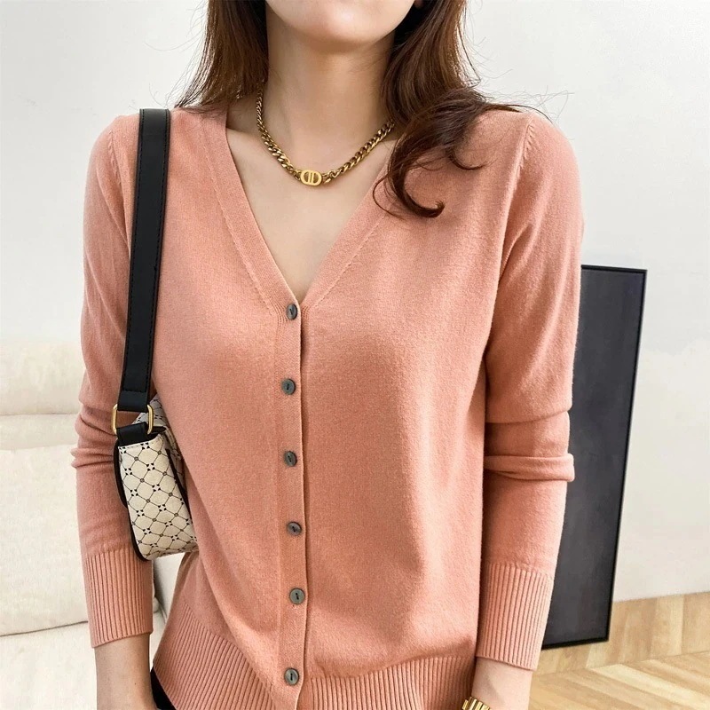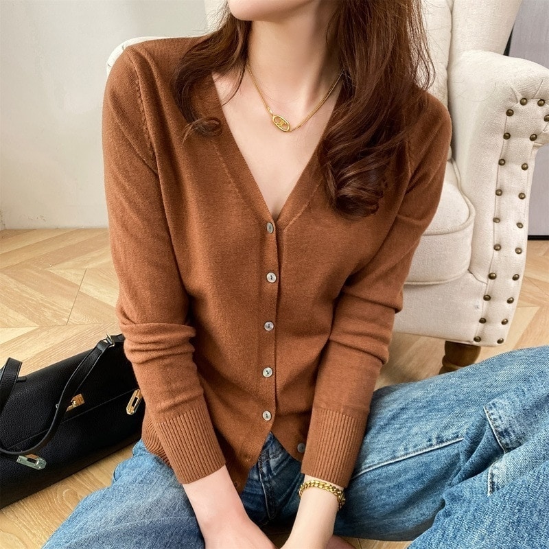 人気なリブニット【Qoo10最安値挑戦!!!】Vネックセーターゆったりカーディガン 無地 ニットトップス 婦人服 ファッション 快適 アウター通勤