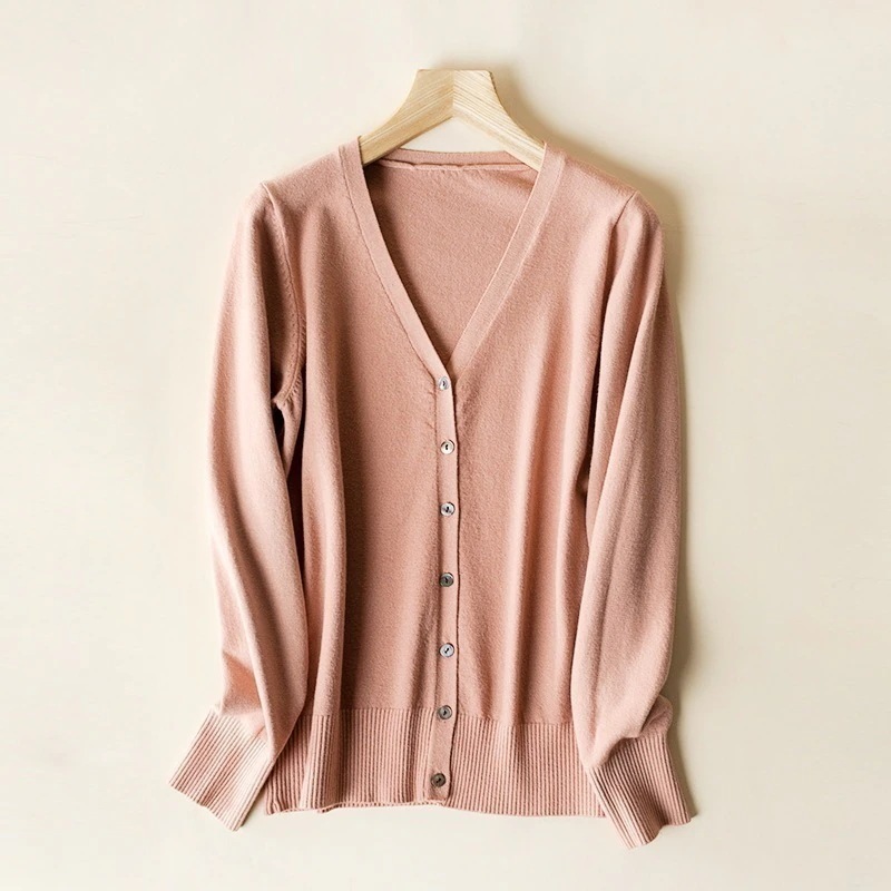 人気なリブニット2025 ファッション 長袖 デザイン感セーター 無地カジュアル アウターVネック レディース ベーシックニットトップス