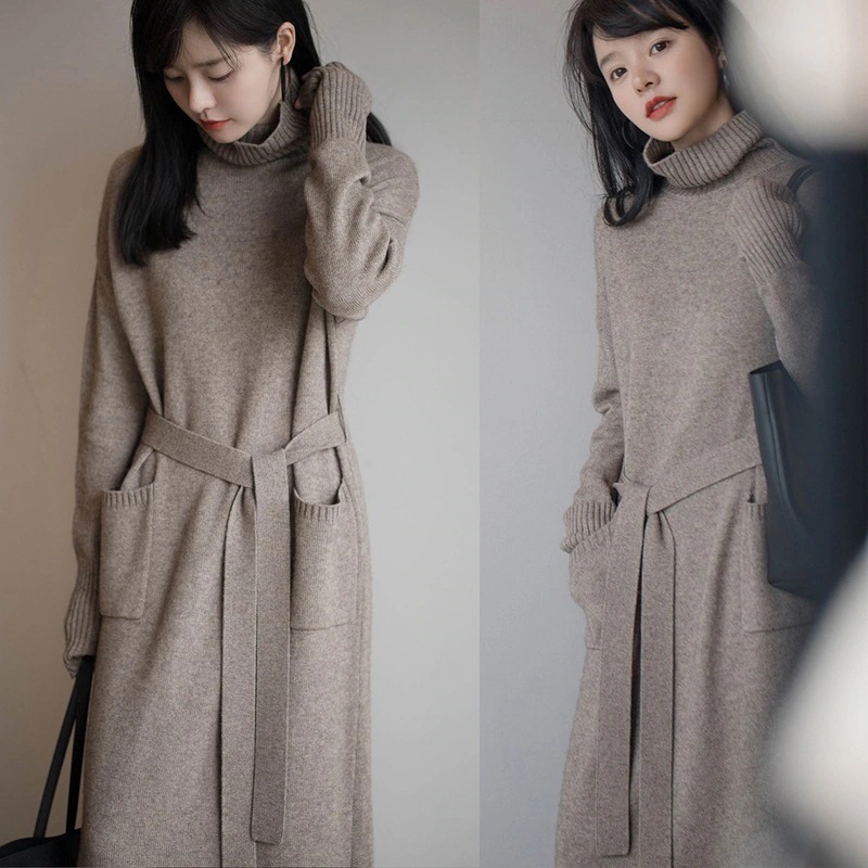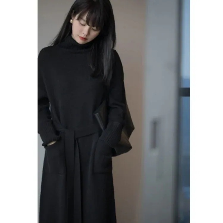 日韓2025秋冬新作ファッション ニットワンピース ゆったり 体型カバー セーター レディース ロングワンピース 大きいサイズ ドレス 通勤