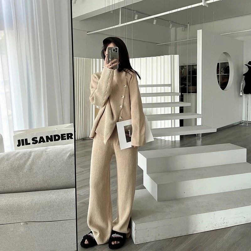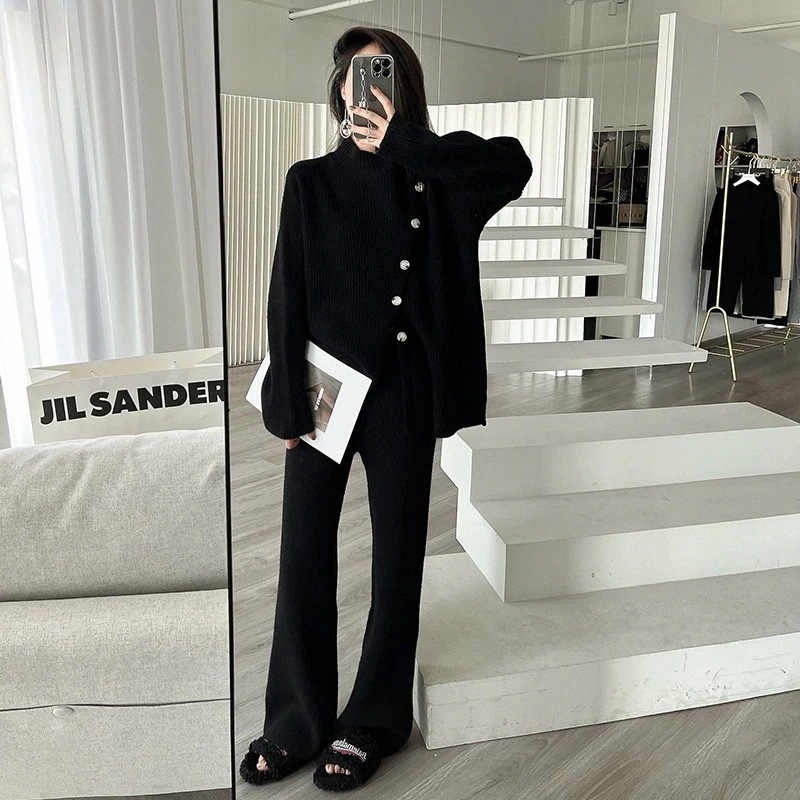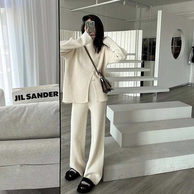 人気なリプニット 新作 2点セット タートルネック セーター ニット 上下セット レディースセットアップ カジュアルゆったり 通勤 ニット アウター ズボン