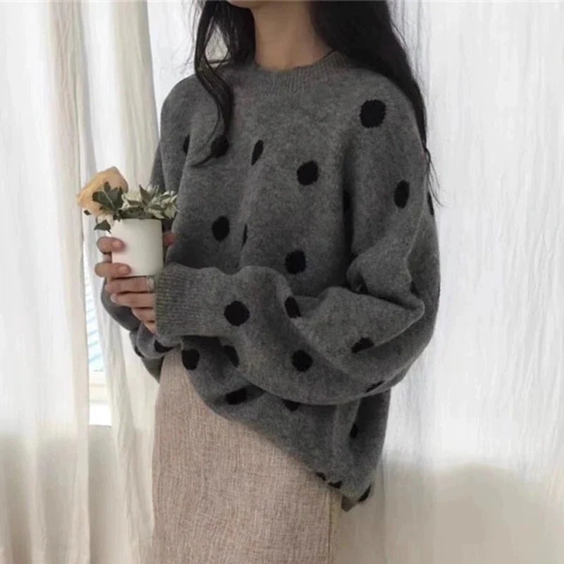 ドット トップ ラウンドネック 大人気 ニットトップス セーター 長袖 女性 ファッション 暖かい