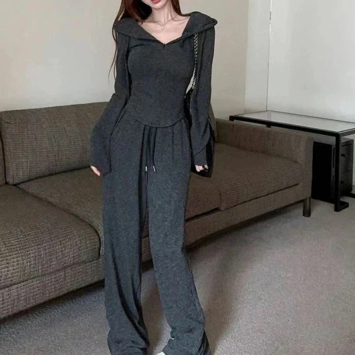 の新作発売カジュアル人気レジャースーツ新作無地ジップショートセクションフード付きカーディガンセーター2点セット