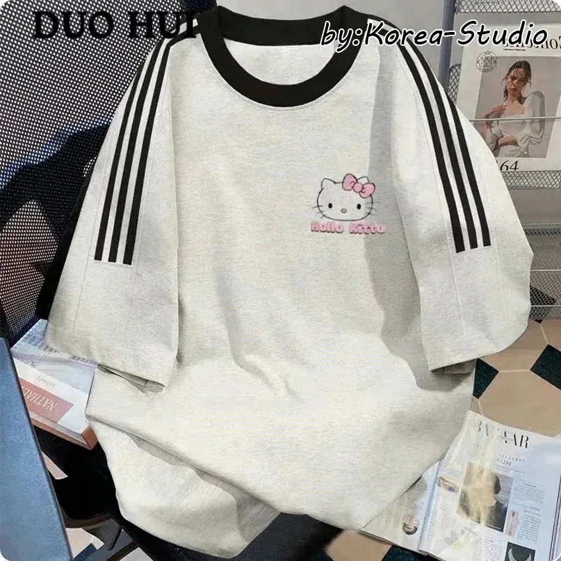 サンリオ【3日出荷】2025Tシャツラウンドネックスウェットシャツハローキティ hellokitty サンリオ 可愛い SNSで大 レディース tシャツ 半袖 224夏服新品 韓国 ロングTシャツ ス