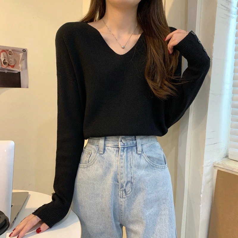 【2枚購入で 2oo円OFF!】韓国ファッション秋冬なリブニット ニットセーター 百掛けトップス ニットインナーVネック ベーシックニットゆったりスウェット 長袖 無地