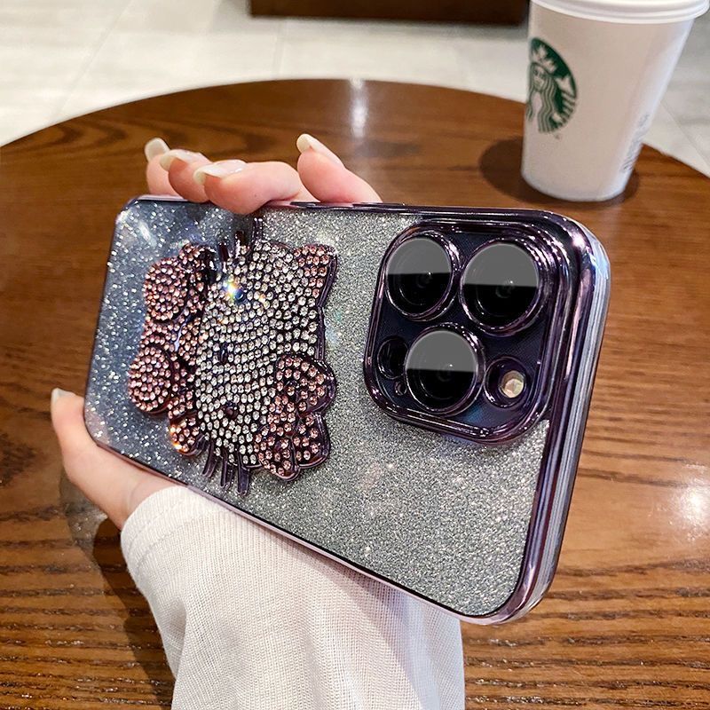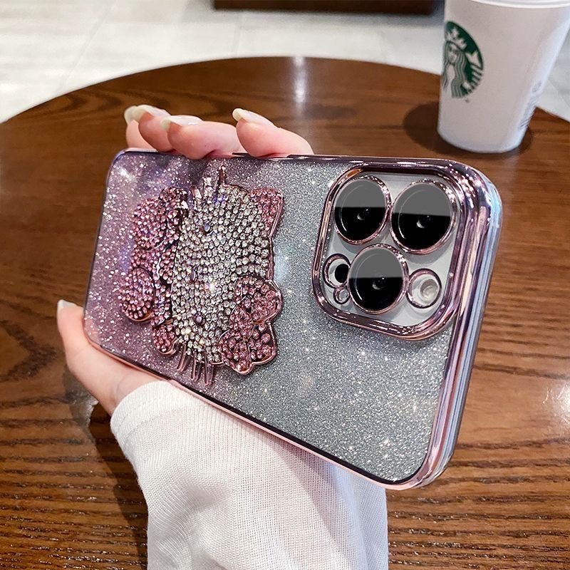 ダイヤモンドキラキラスマホケース キティちゃん 透明ケース カメラ保護フィルム 付着 iphoneケース7/8/7p/8p/11/12/13/14/15全機種対応