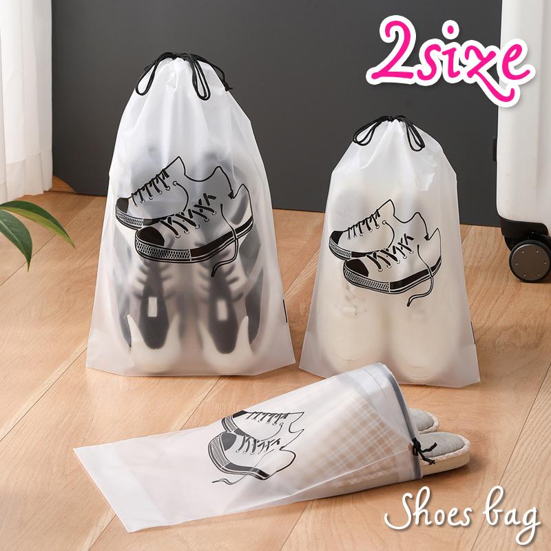 【3日出荷】シューズバッグ シューズケース 靴袋 靴入れ 巾着袋 トラベル用品 旅行 収納袋 小物入れ ポーチ 半透明 持ち運び 靴 上履き スリッパ シンプル