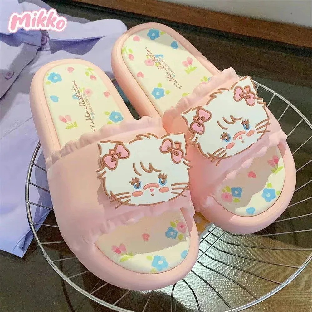【3日出荷】【4月上新】Mikko連名スリッパが超かわいい子犬子猫室内スリッパかわいい外履き甘いレースの涼しいスリッパins風甘い女の子