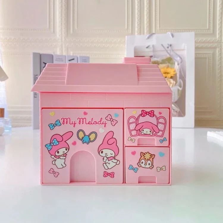 【3日出荷】サンリオ小さな家の形がかわいいクロミデスク収納ボックス学生机整理小さな引き出しペンケース雑物入れ