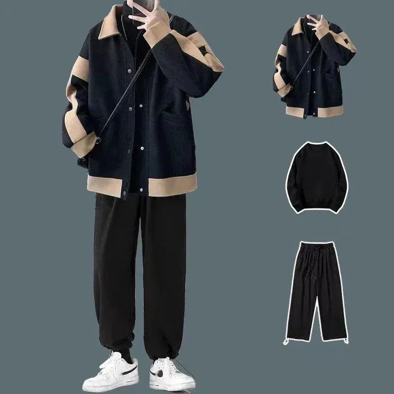 入荷 上下3点セット メンズ セット オシャレ トレンド ファッション ウールジャケット 百掛けTシャツ カジュアルスウェットパンツ