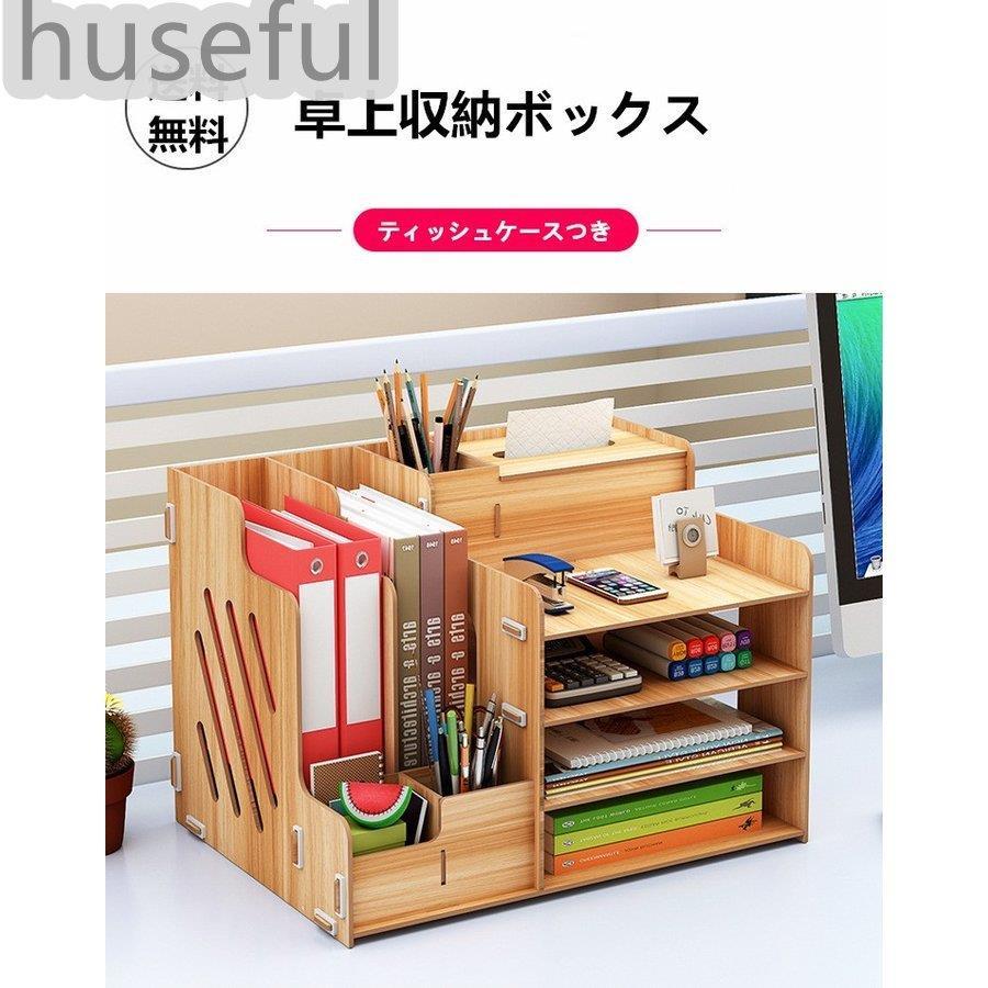 深型 A4サイズ 木製 組み立て式 収納ボックス 生活収納 卓上 レターケース 卓上ラック 机上棚 多機能 ストレージ ペン立て