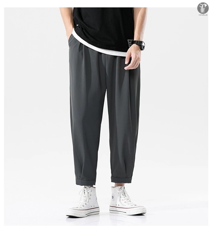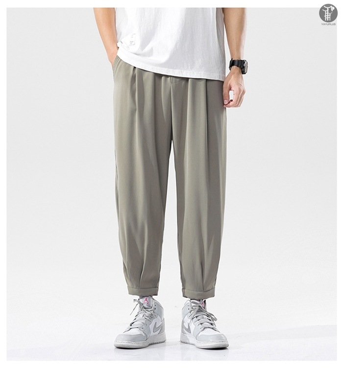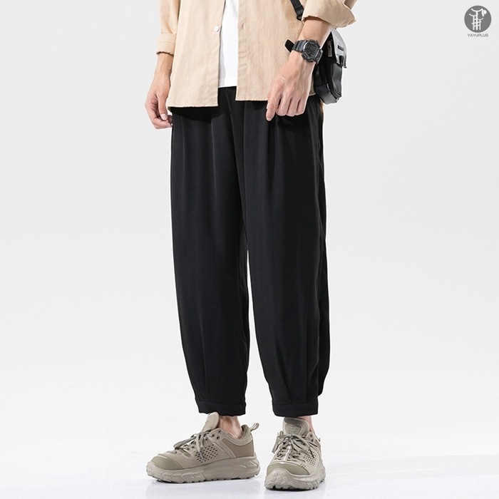 メンズ 薄手 無地 9分丈 ウエストゴム パンツ 涼しい サルエル ガウチョ ワイド