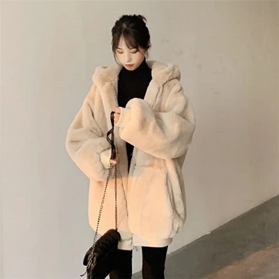 大人気 韓国語版 ぬいぐるみ コート 外出活動 おしゃれ 繭型 ファー ジッパー イミテーションウサギの毛皮