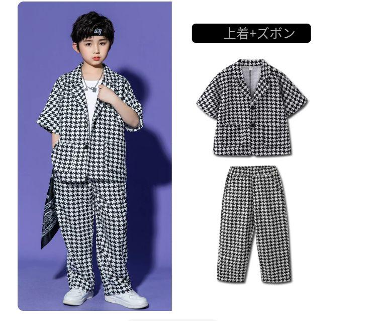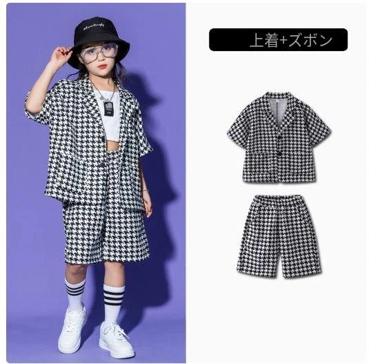 新商品発売 出荷が迅速である ダンス衣装 セットアップ 長袖 ジャケット 黒 白 スーツ チェック柄 男の子 女の子 団体服 ヒップホップ衣装 キッズダンス衣装 K-POP 男女兼用 演出服 舞台服
