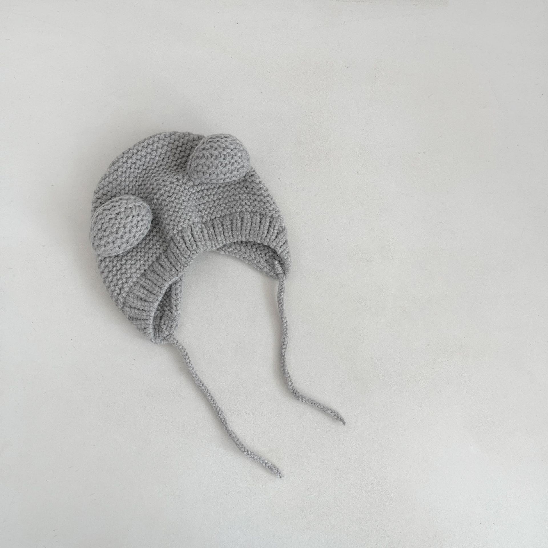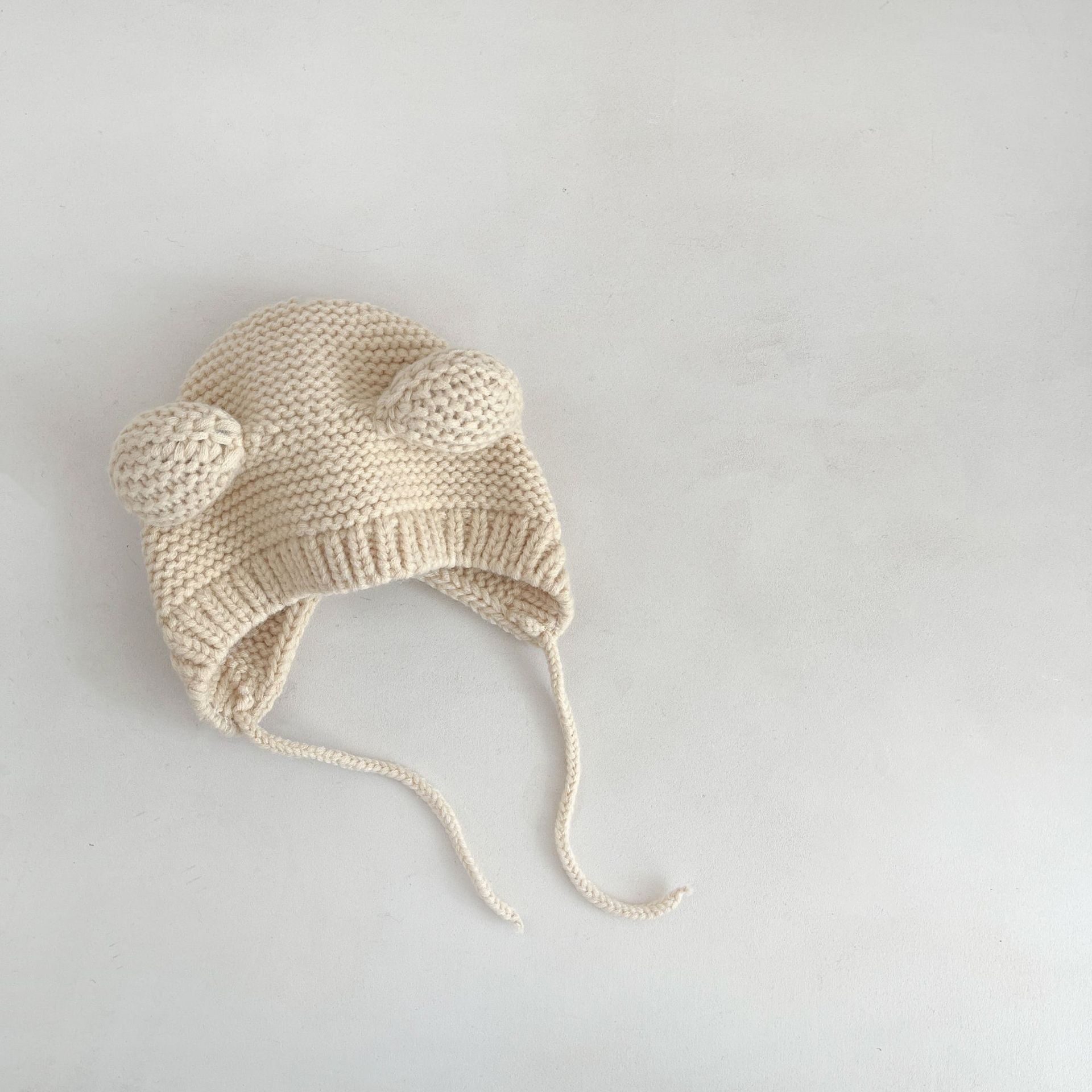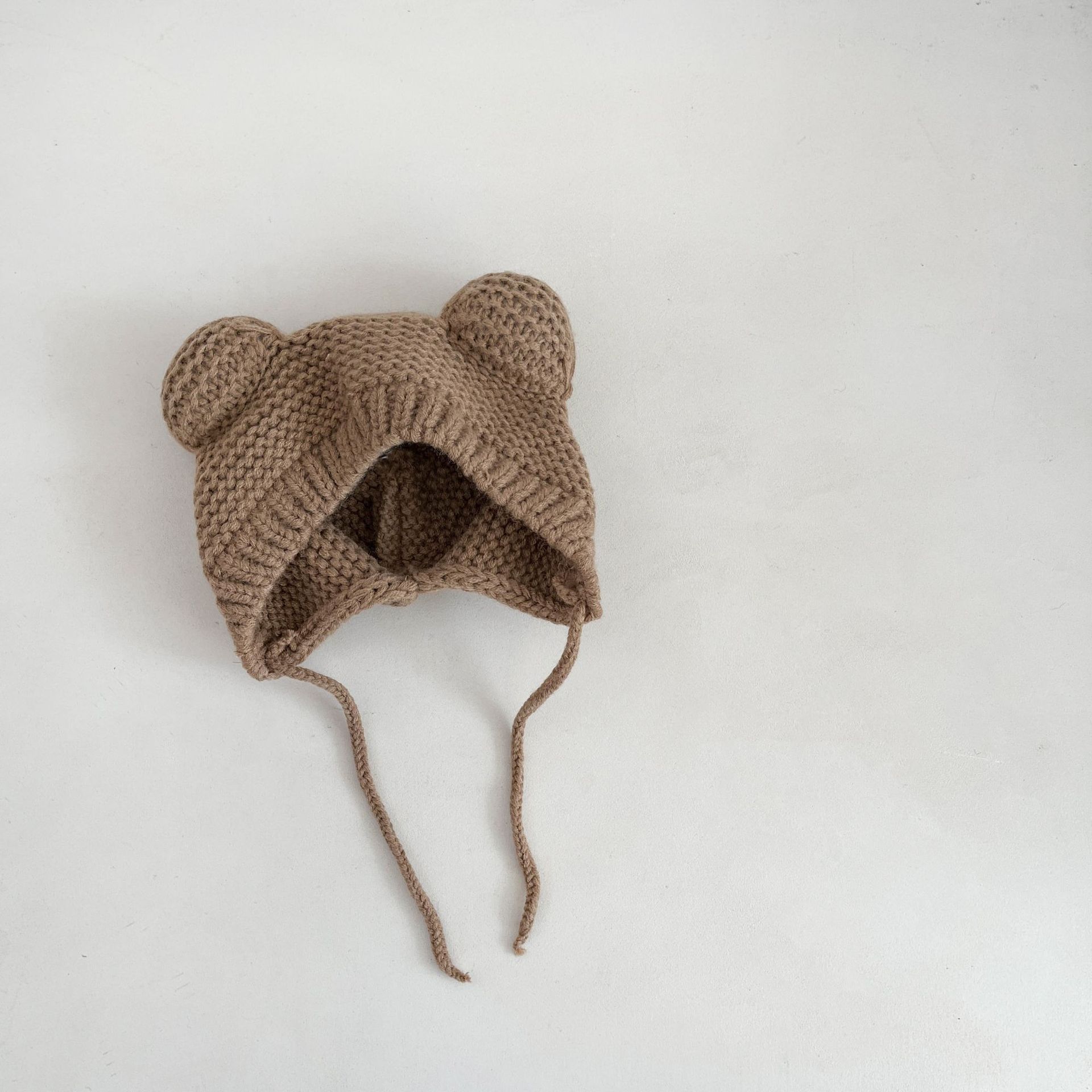 ベビーキャップ 可愛い超萌えインフルエンサー風小熊耳 秋冬男女ベビー用 プルオーバーニットイヤーウォーマー