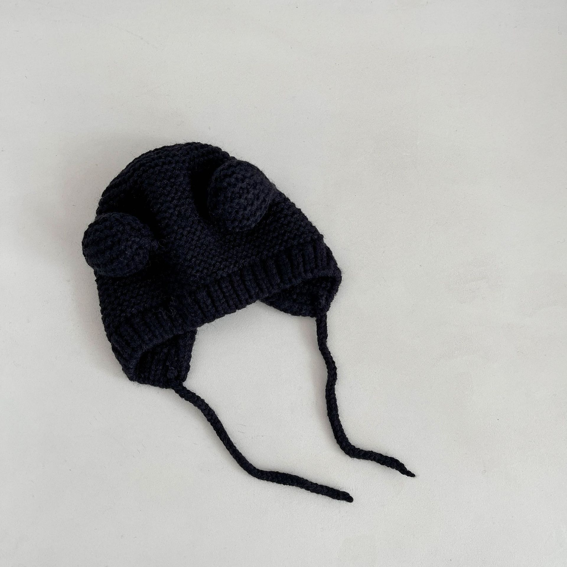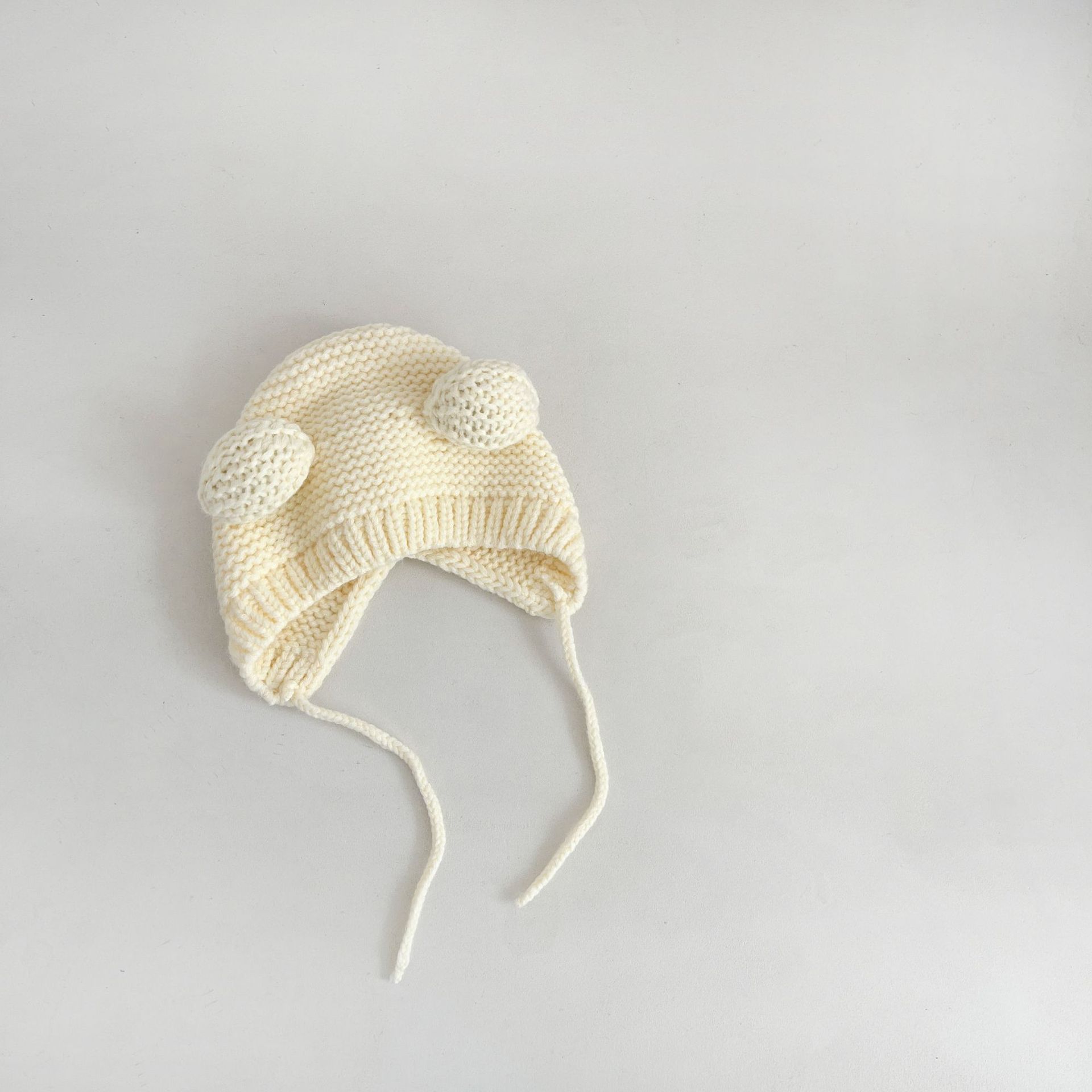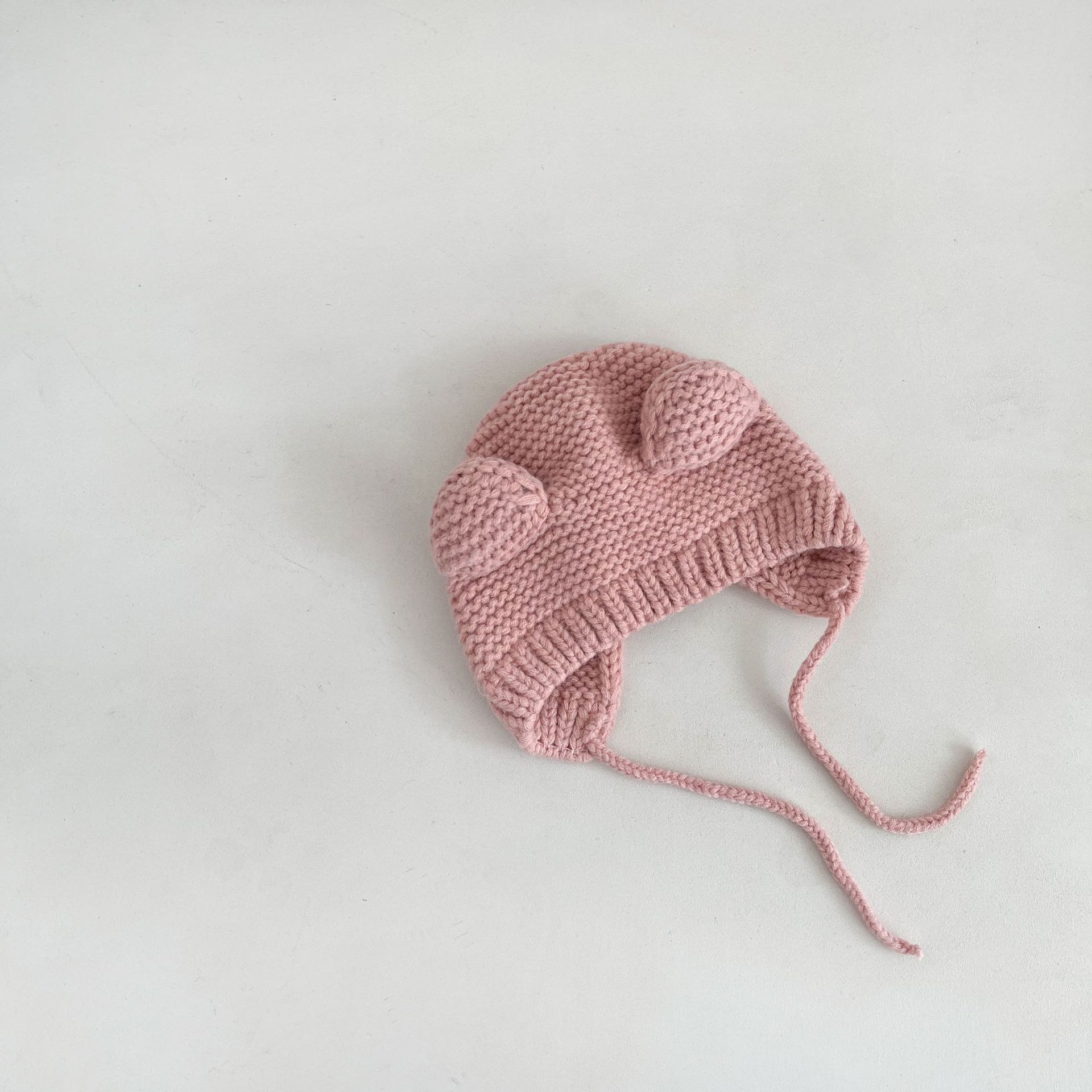 ベビーキャップ 可愛い超萌えインフルエンサー風小熊耳 秋冬男女ベビー用 プルオーバーニットイヤーウォーマー