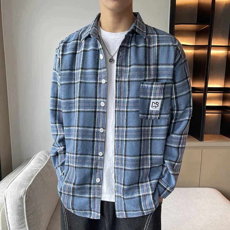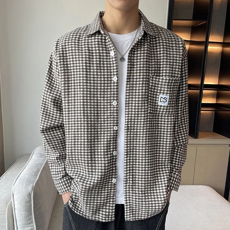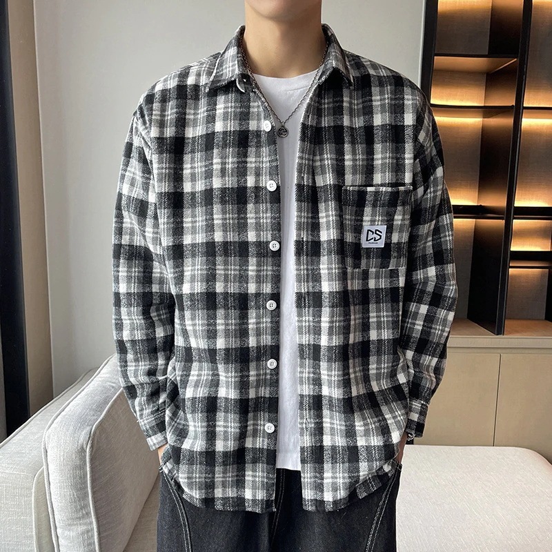 チェックブラウス特集メンズカジュアル長袖トップス韓国ファッションカーディガンアウター薄型シャツ大きいサイズレディースワイシャツ
