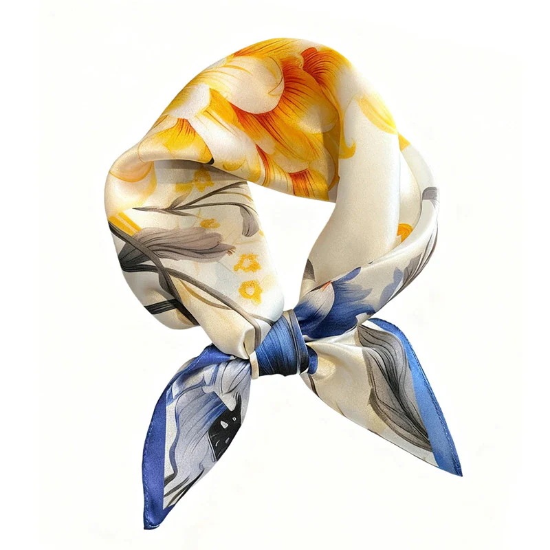 【新作登場】ジェンダーレス シルクスカーフ お出かけ 日常使い に マルチウェア できる 53cm カーキ ライトイエロー 極細肌触り マフラー ネックウォーマー ストール