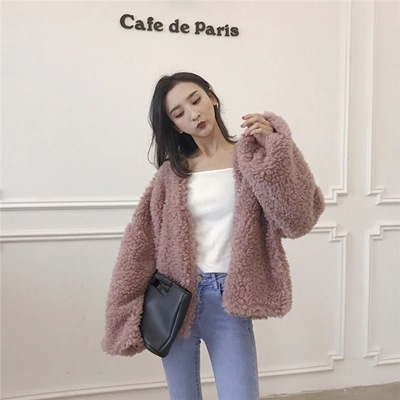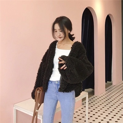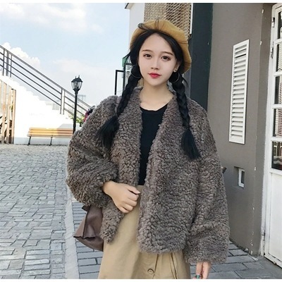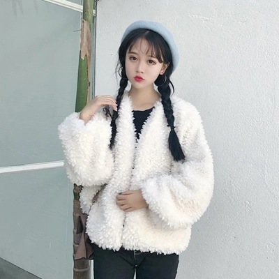ファージャケット アウタ プードルもこもこプードルボア風ふわふわファーコートフェイクファーショート丈 韓国ファッション