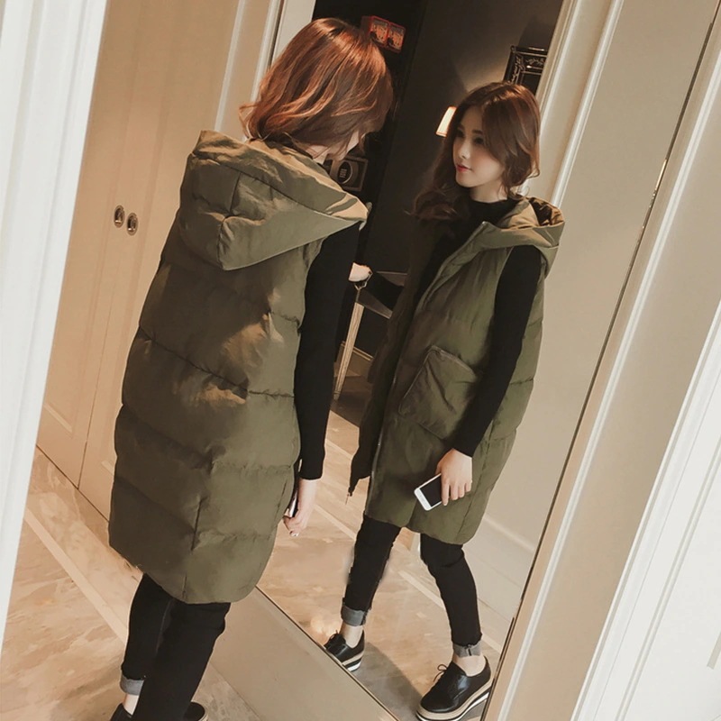 フード付き ベスト セミロング 大きいサイズ カジュアル 綿入れの ノースリーブ おしゃれ 百掛け アウター