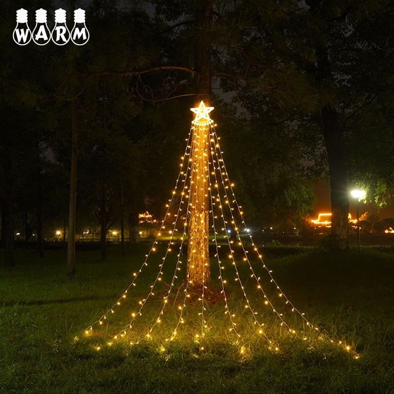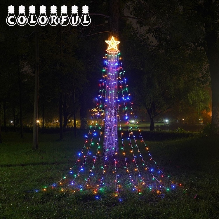 イルミネーション ライト L 350球 ドレープライト クリスマス ソーラー式 防水 屋外 屋内 店舗 家庭 星モチーフ ツリー 飾り付け 8モード リモコン付 タイマー機能パーティー