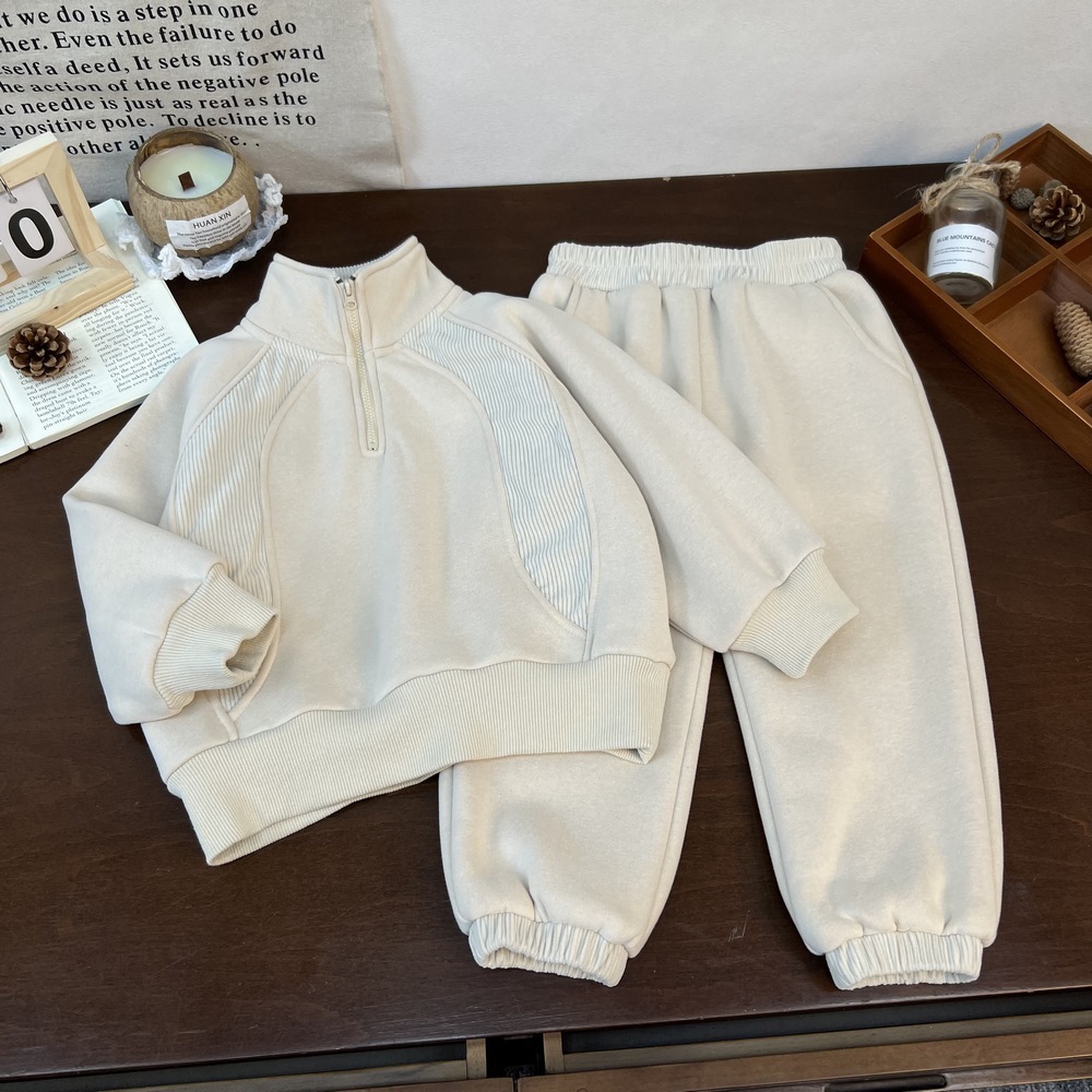 秋冬用 男女児童向け ファッション立衿ジャージとズボンのツーピースセット