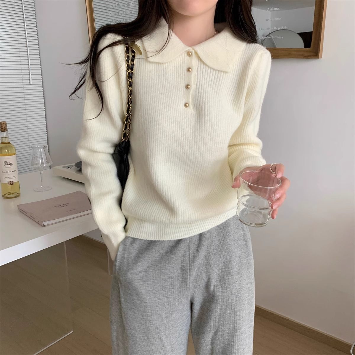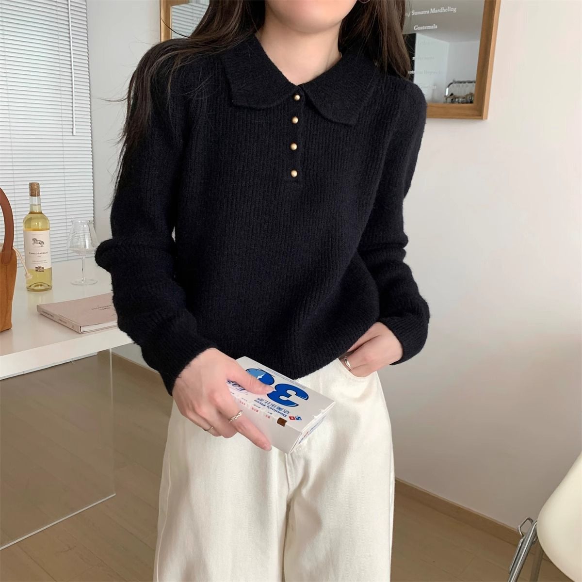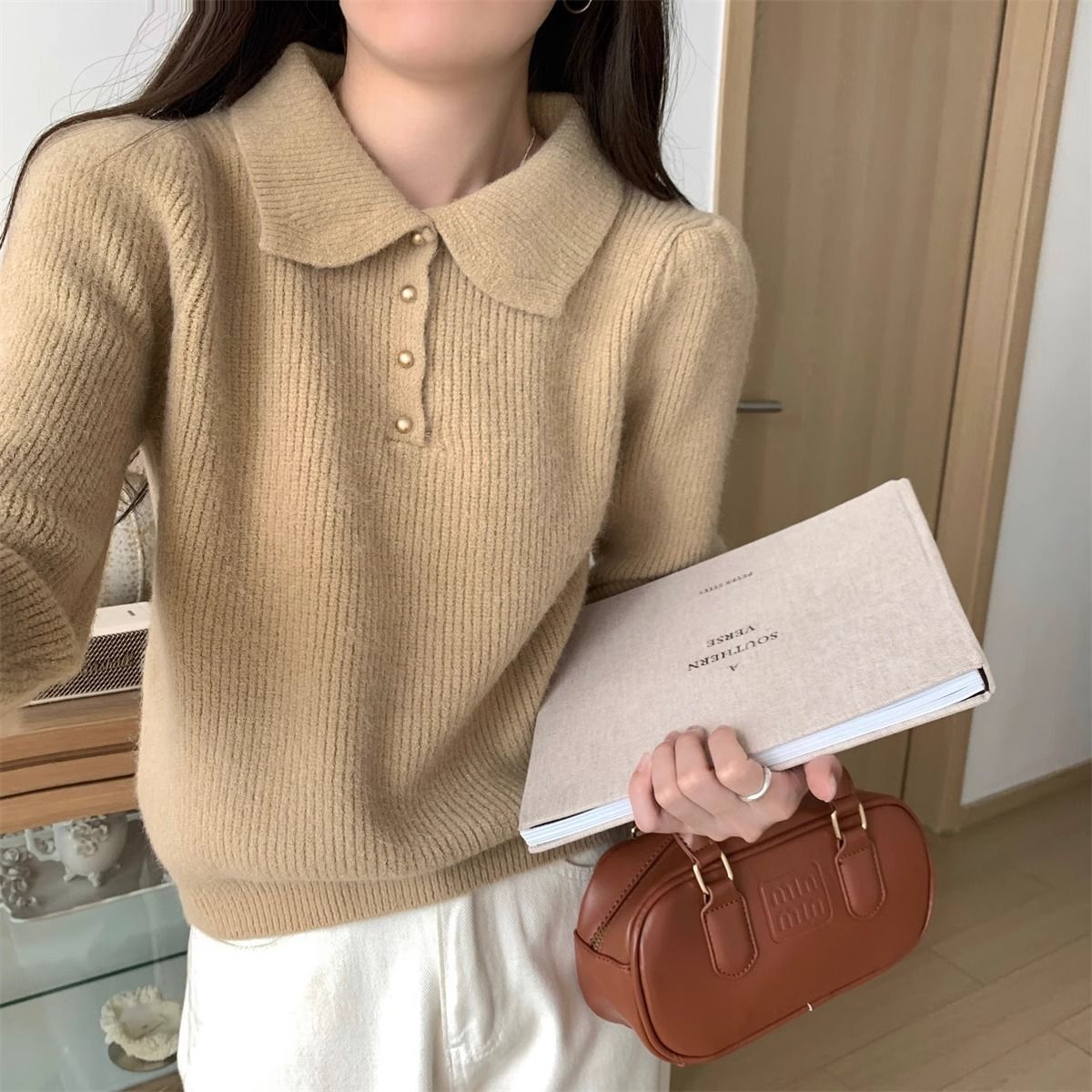 秋冬ポロカラーボトムスセーターカレッジスタイル高級インナーウェアエレガントでシックなレディースセーター