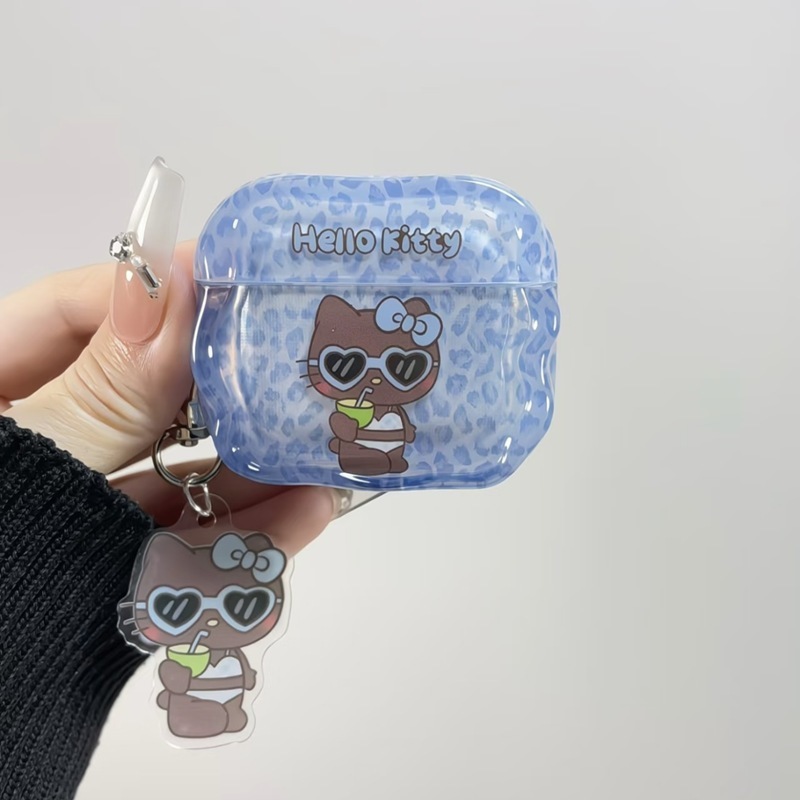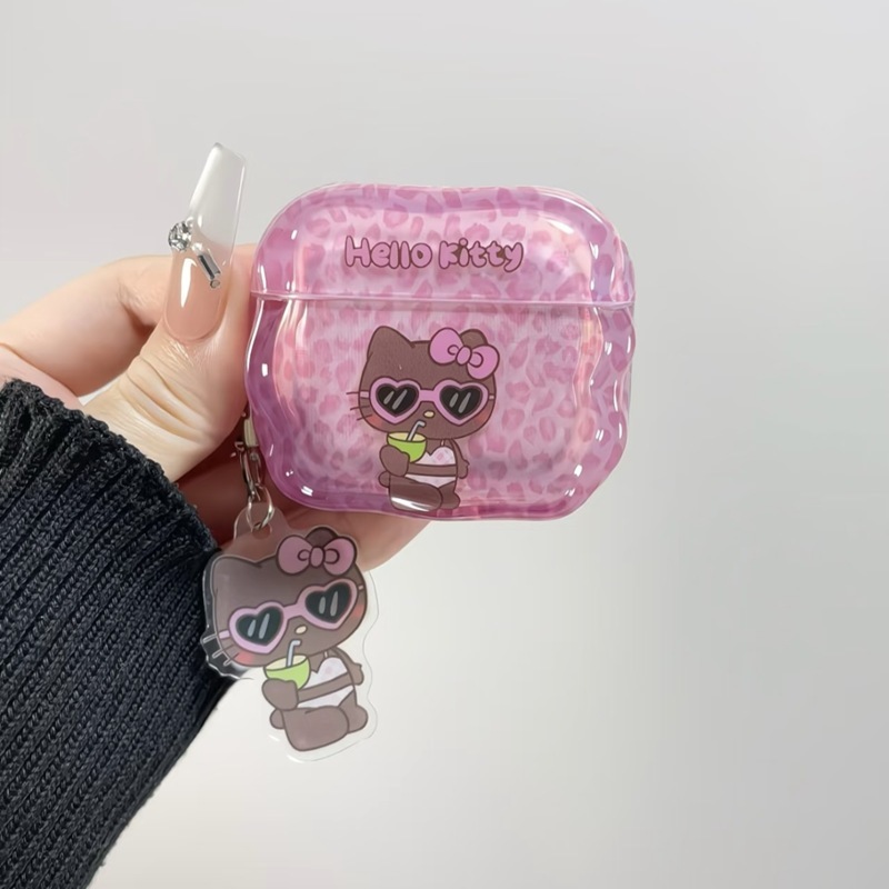 ヒョウ柄の夏用ブラックレザーKTAirPods第4世代イヤホンカバーに対応Apple Bluetooth保護ケース3/pro2ソフトシリコン