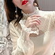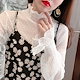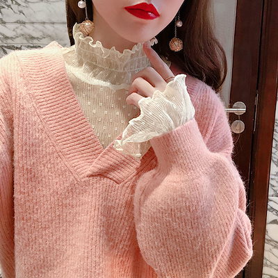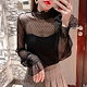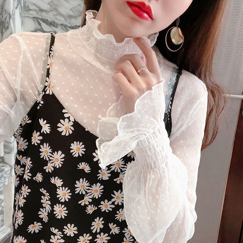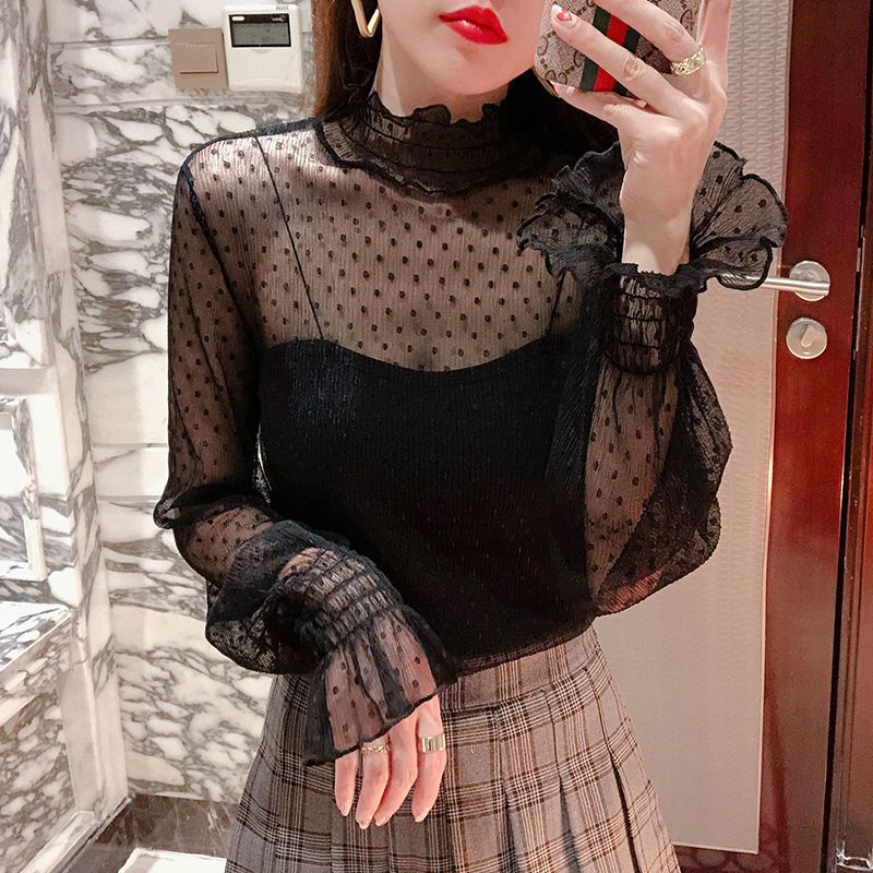 フレアスリーブ メッシュ トップス プルオーバー レディース ラッフル ドット ボトムシャツ 長袖Tシャツ 薄手 レース インナー