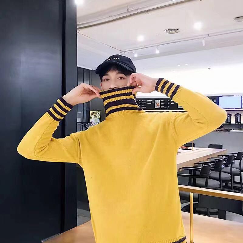 人気セーター 秋冬 メンズ ボーダー柄 長袖 ニット タートルネック カットソー プルオーバ