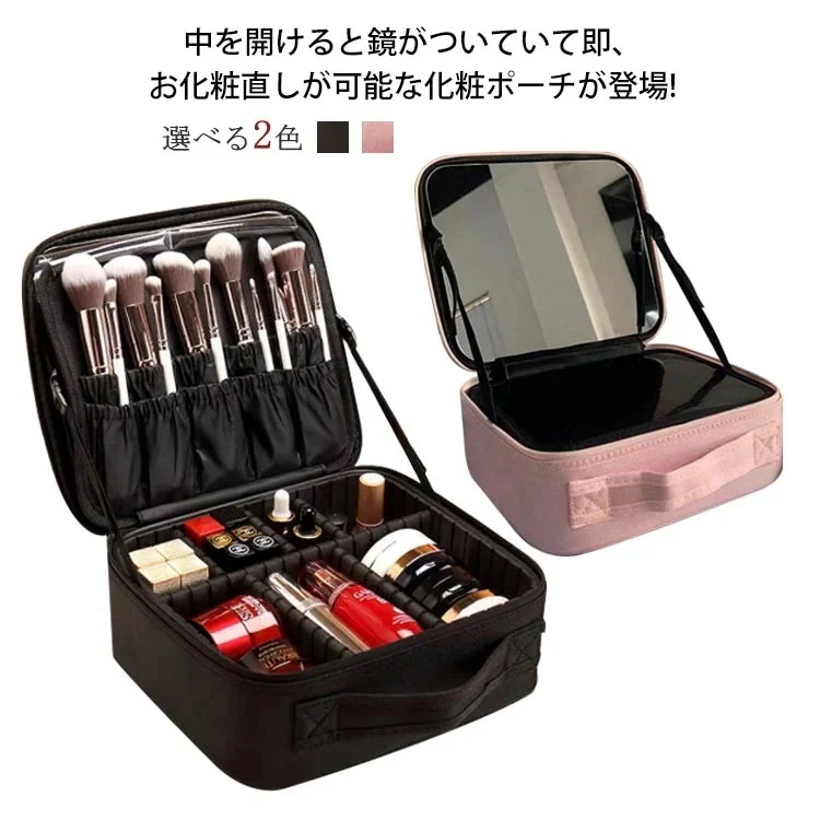 ミラー付き 化粧ポーチ メイクポーチ コスポーチ 鏡付き 機能的 メイク直し コスメボックス 家置き 持ち運び 仕切り 大容量 化粧品入れ 化粧品 コスメ アクセサリー 収納 ケース 化粧箱 トラベル