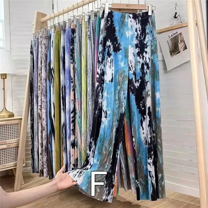 【快速出荷】ワイドパンツ プリーツパンツ セルフカット レディース プリーツ ゆったり 低身長 ムラ染め パンツ カットフリー ウエストゴム 涼しい