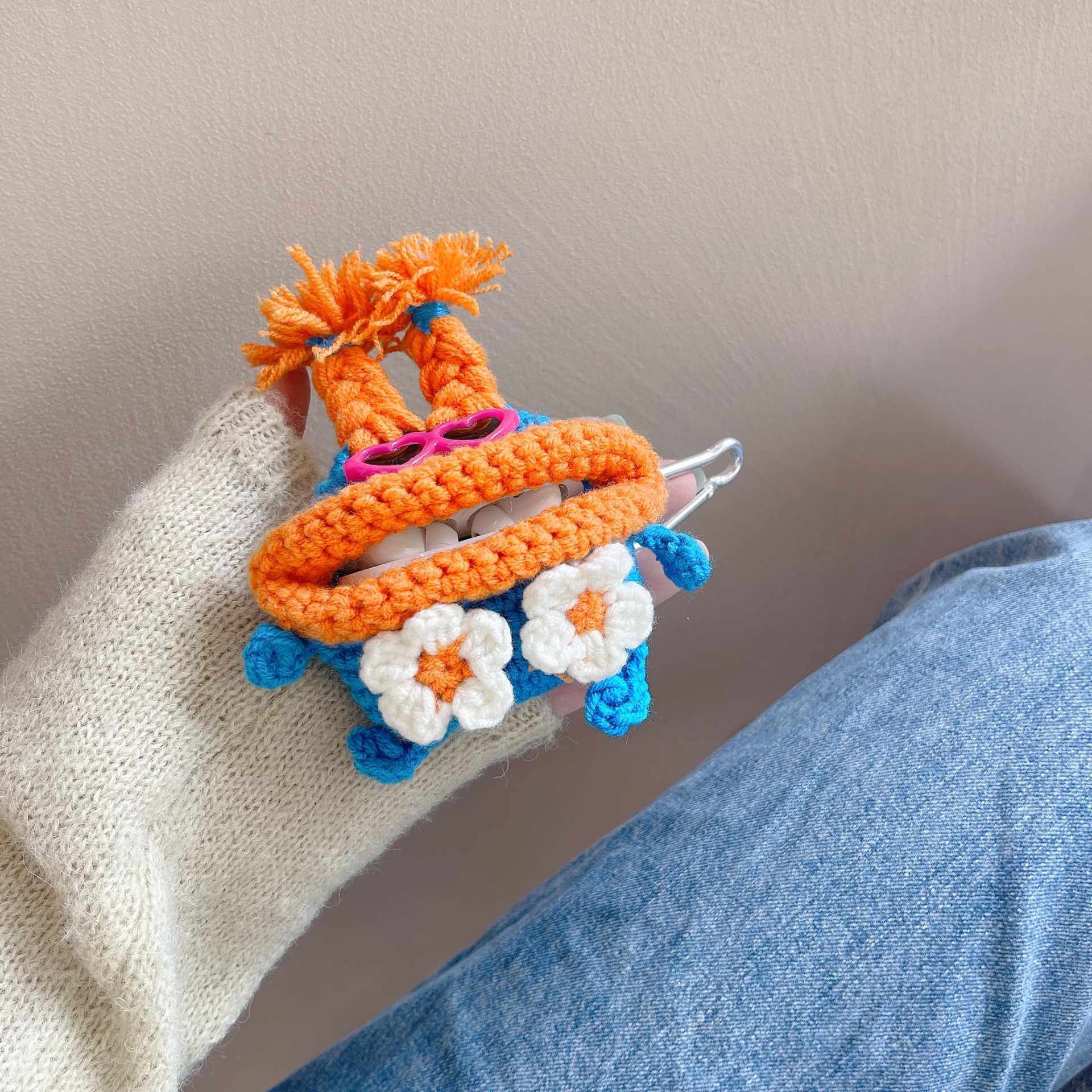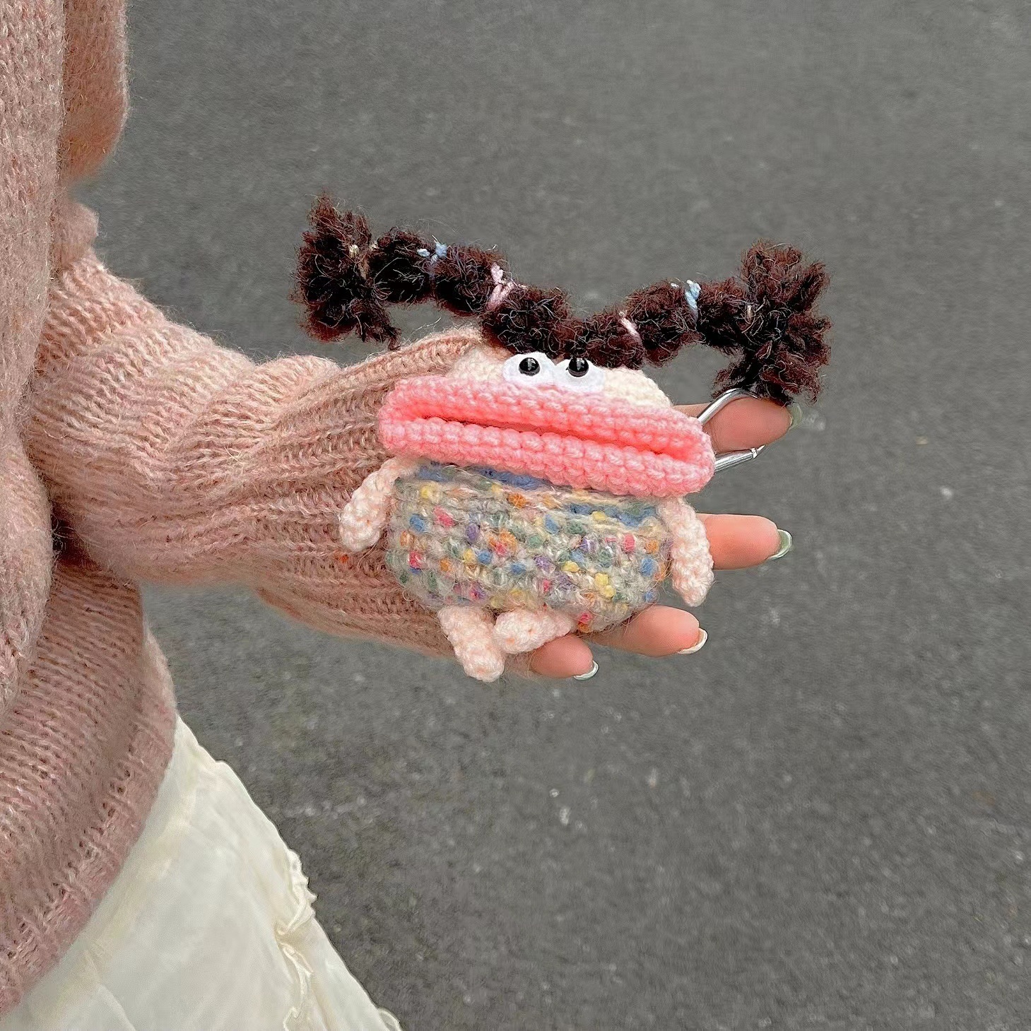 個性 ニット イヤホンケース AirPodsケース新しい第3世代AirPods proケース 可愛い 創造性 ぬいぐるみ 編み物大きい口 イヤホンケース