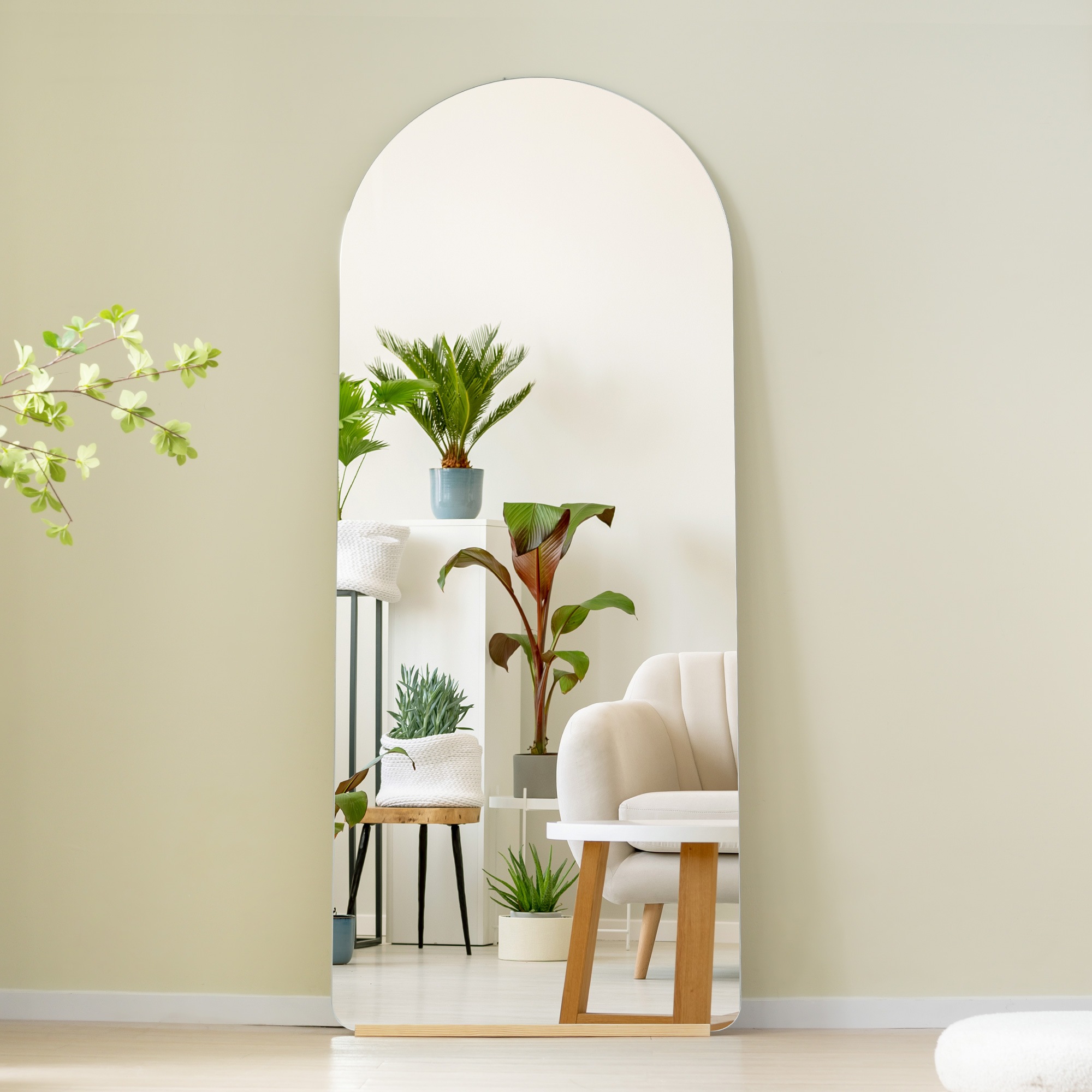 全身鏡 姿見鏡 スタンドミラー ノンフレーム アーチタイプ 立てかけ 姿見 鏡 ミラー おしゃれ 大型 飛散防止 木製台あり 160*50CM