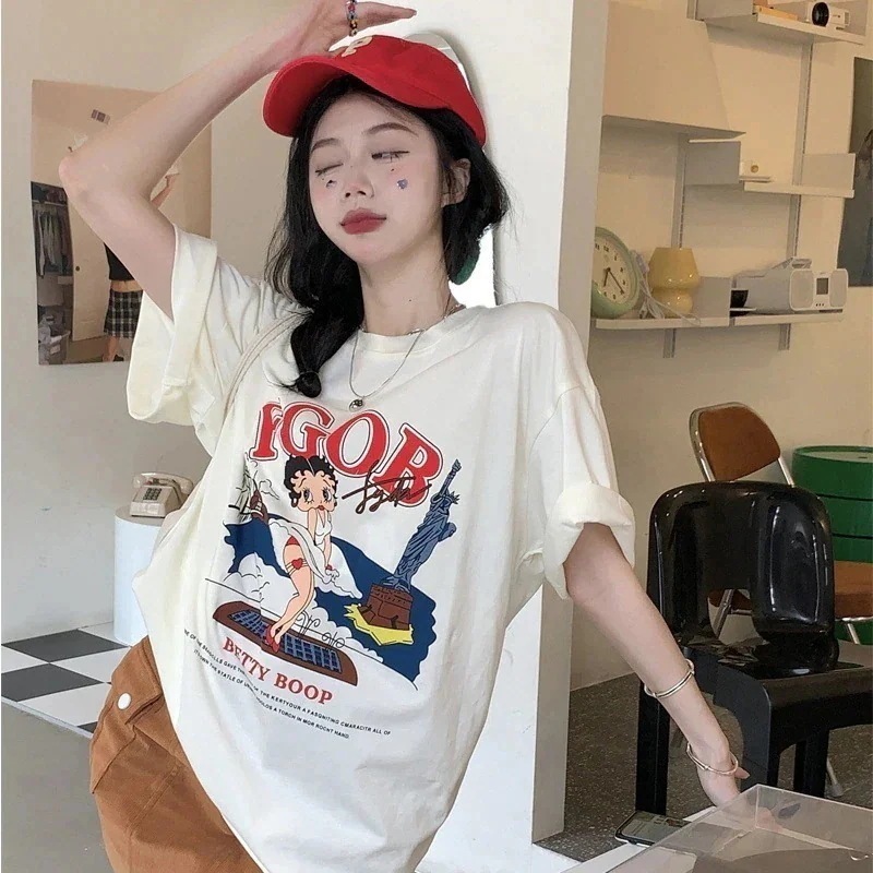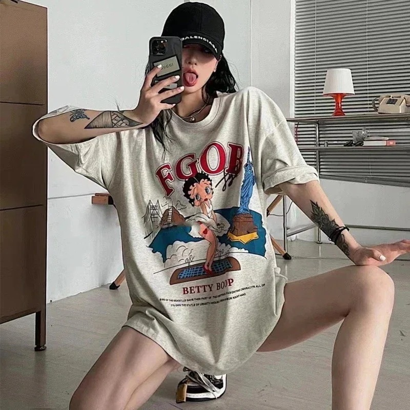Tシャツ レディース 半袖  ロゴ オーバーサイズ  ゆったりTシャツ  カットソー ロング トップス  大きいサイズ クルーネック ビッグシルエット 体型カバー 半そで 夏