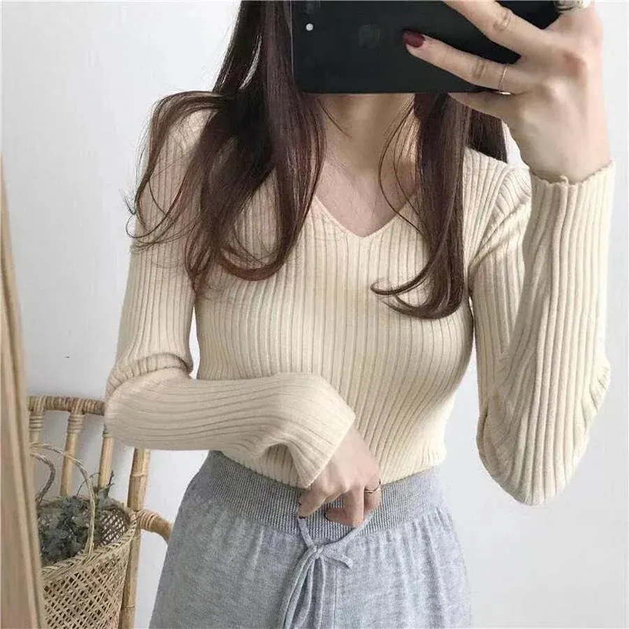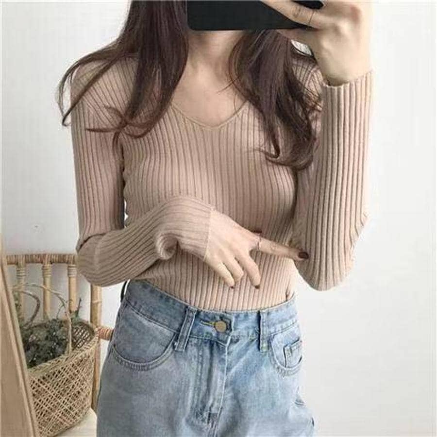 Vネック 2025新作 秋冬 新作 長袖 着痩せ ニット アンダーウェア セーター インナー トップスレディースカシミヤタッチ ベーシックニット 福袋