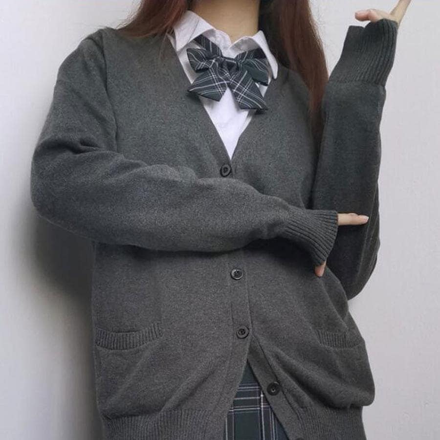 カーディガン レディース 長袖 通学 制服 Vネック 学生 事務服 オフィス 高校 看護師 介護 ポケットが飾り 無地 ショート丈 春 夏 秋 冬 羽織り