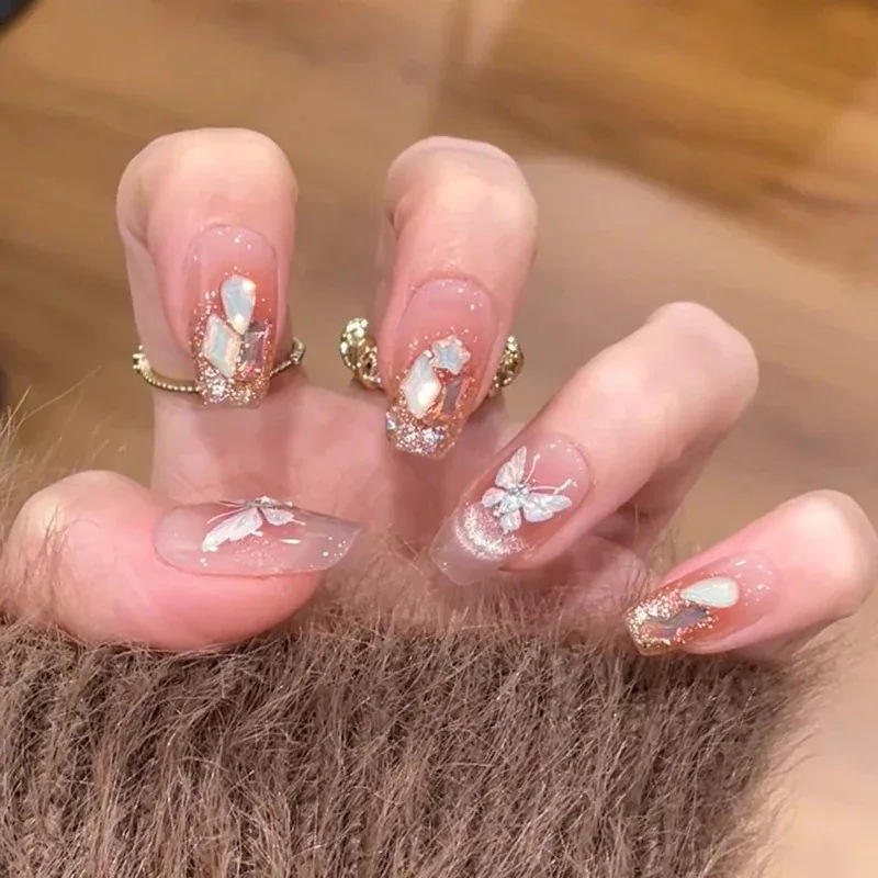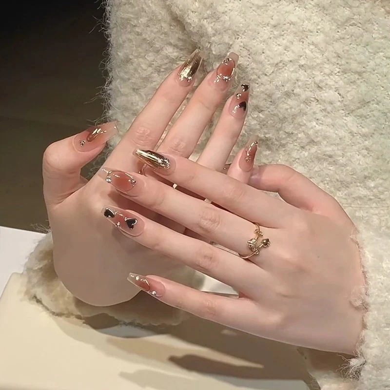 !韓国ファッションネイルチップ 人気 ジェルネイルハートネイルチップ ジェルネイルシール シンプル 簡単に貼れるins風 可愛い蝶々 福袋 長いネイルチップ