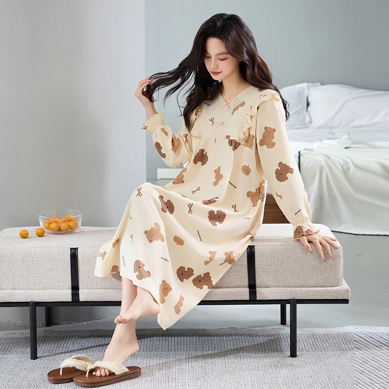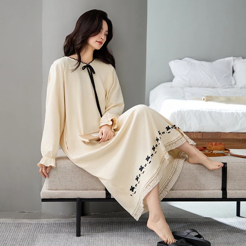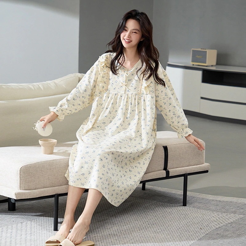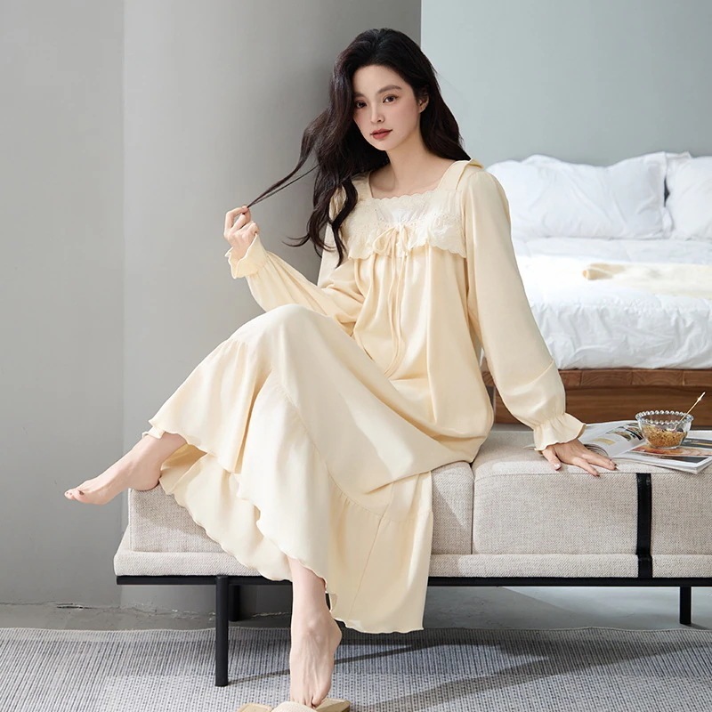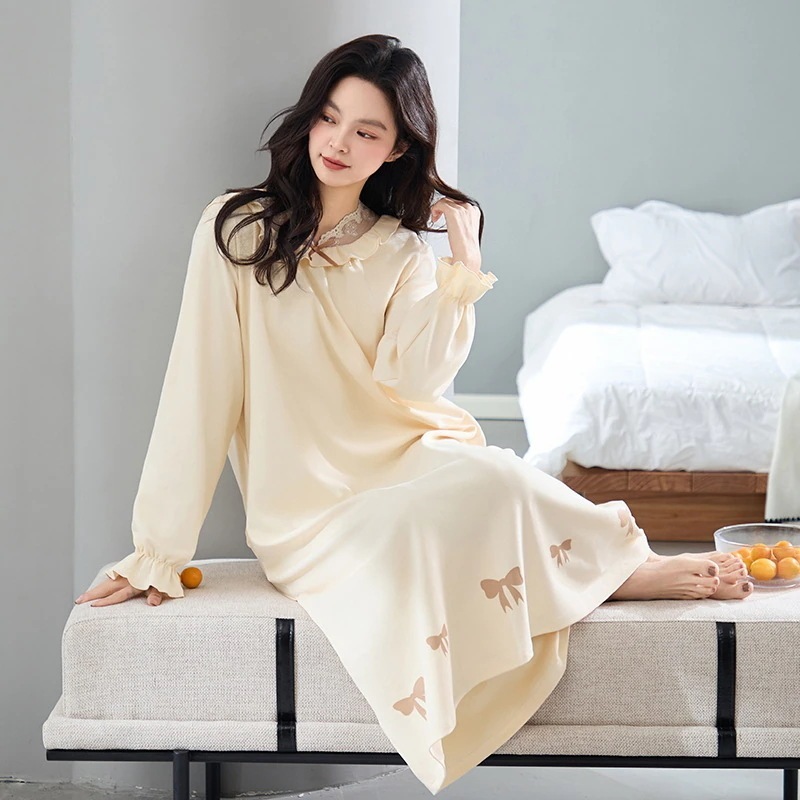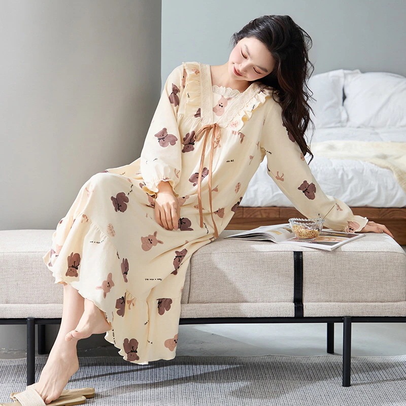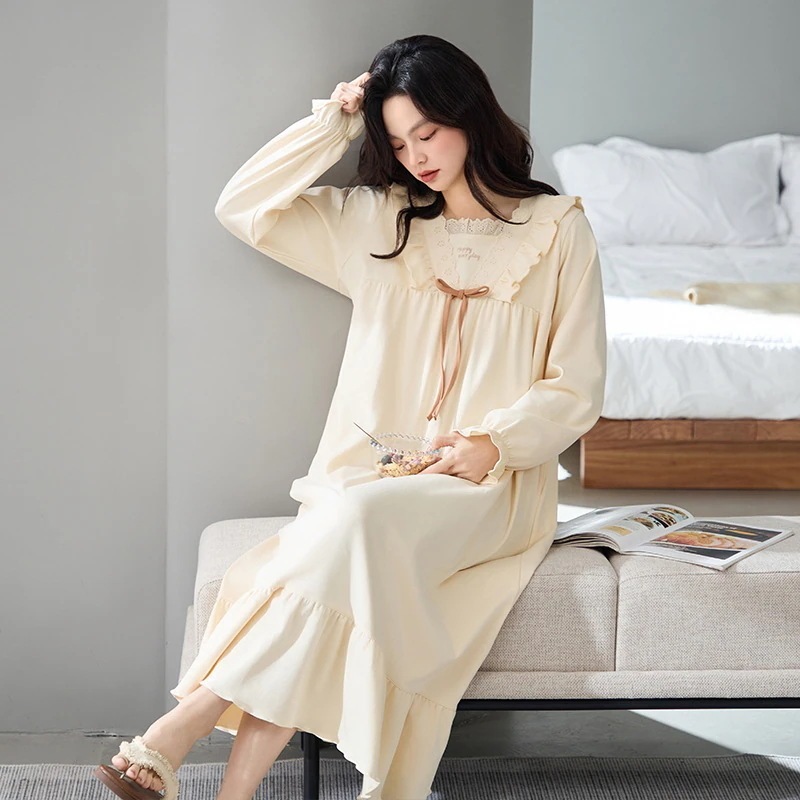 夏 パジャマ 綿 長袖ワンピース 春 秋 レース 可愛い 大きいサイズ ルームウェア ワンピース 部屋着 レディース