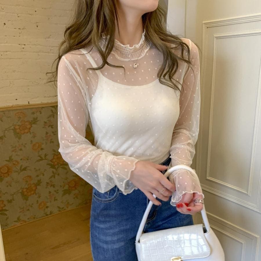 アンダーウェア 新商品 単品,ストラップなし 透ける インナー メッシュ トップス レース 女装 薄い セクシー 長袖ブラウ ス